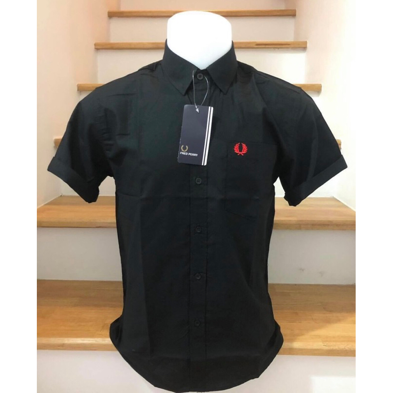 เชิ้ตแขนสั้นชายเนื้อผ้าoxfordใส่สบายระบายลมดีสีดำมีกระเป๋างานป้าย