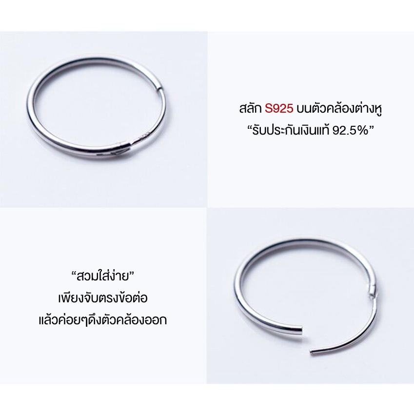 [SE615] ต่างหูห่วงเงินแท้ 92.5% หนา 1.2 MM ขนาด 8,10,13,20,30 MM สำหรับคนแพ้ง่าย 925
