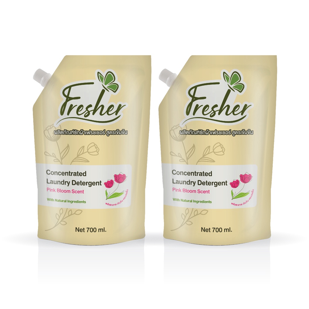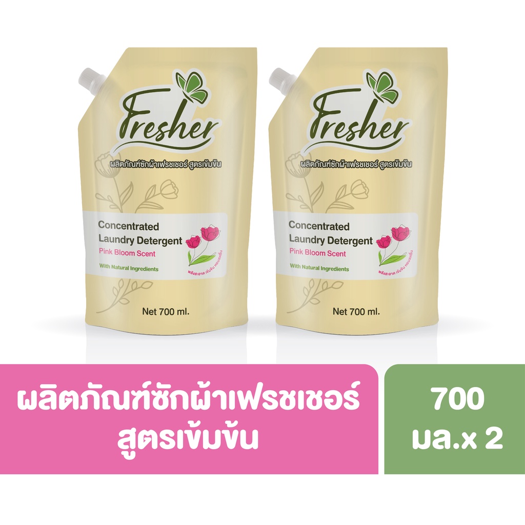 [สุดคุ้ม][แพ็คคู่]น้ำยาซักผ้าเฟรชเชอร์ สูตรเข้มข้น กลิ่น Pink Bloom แบบถุงเติมขนาด 700 มล.