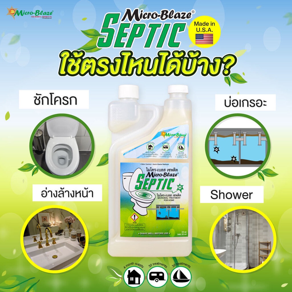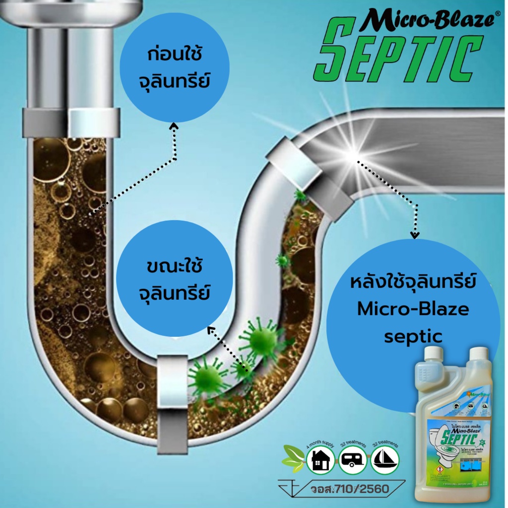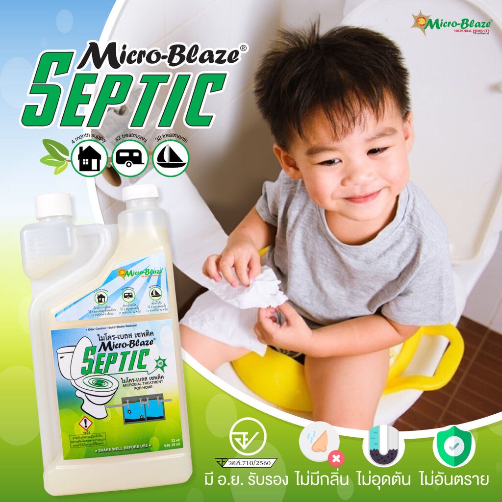 Micro-Blaze Septic จุลินทรีย์กำจัดกลิ่นเหม็นห้องน้ำ แก้ชักโครกกดไม่ลง ชักโครกตัน ลดการเกิดส้วมตัน ส้วมเต็มเร็ว ส่งฟรี