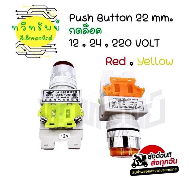 สวิทซ์ 22mm กดติด-กดดับ(ราคาต่อ 1ชิ้น) 12v,24v,220vac มีสิ้นค้าพร้อมส่งในไทย
