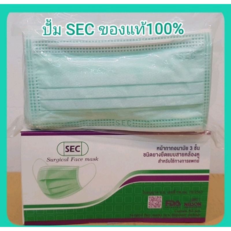 หน้ากากอนามัย 3ชั้น ทางการแพทย์ ยี่ห้อSEC ป้องกันเชื้อ เชื้อไวรัส ได้ดีเยี่ยม ผ่านมาตราฐานFDA,NELSON,FDA 40กล่อง/ลัง
