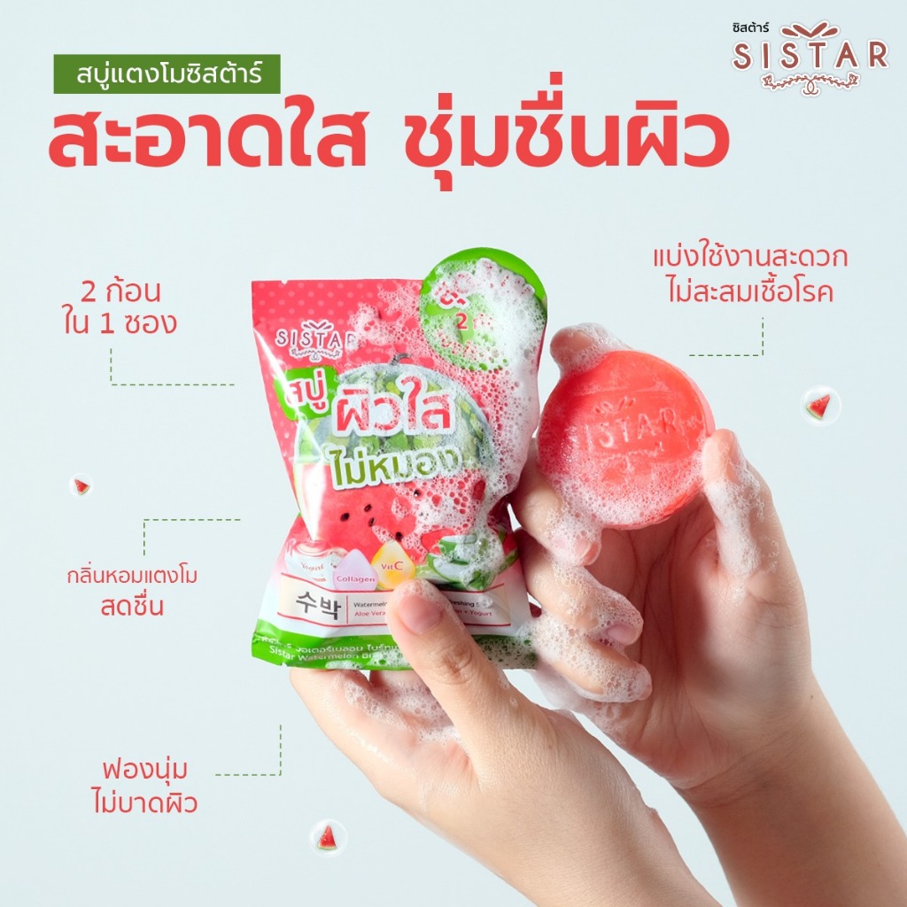 Sistar Official ซิสตาร์ วอเตอร์เมลอน ไบร์ทเทนนิ่ง แอนด์ รีเฟรชชิ่ง โซป สบู่แตงโม หน้าใส (SST11)