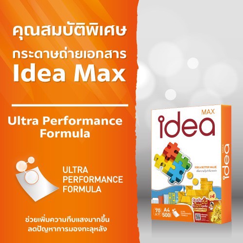 Idea กระดาษถ่ายเอกสาร 70 แกรม และ 80 แกรม Idea Green Idea Max Idea Work A4 1 รีม บรรจุ 500 แผ่น