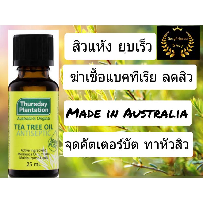 Thursday Plantation Tea Tree Oil 25 ml ทีทรีออย ลดสิว ฆ่าเชื้อแบคทีเรีย ทีทรีออยล์ จากออสเตรียเลีย teatreeoil ทีทีออย