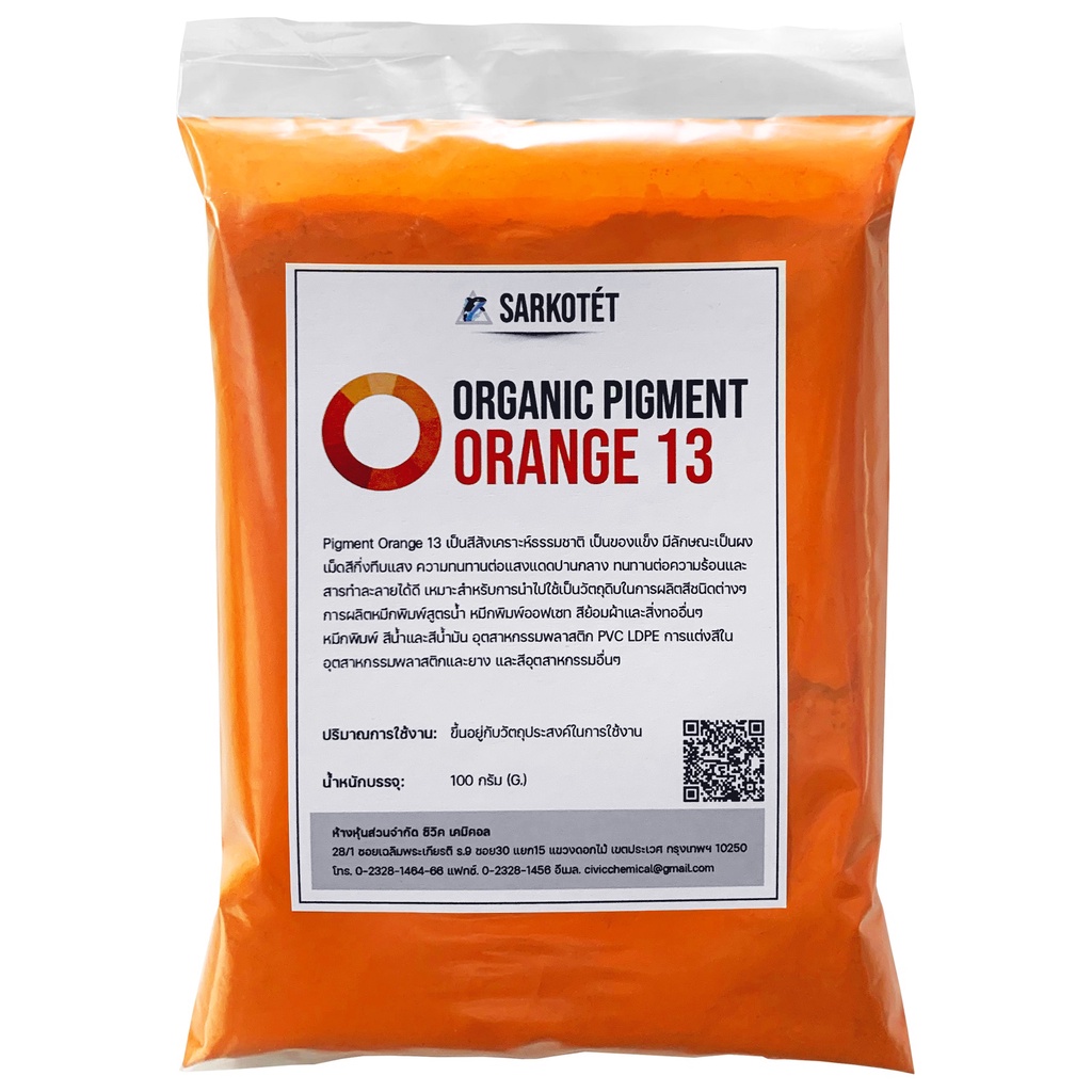 พิกเมนต์สีส้ม Organic Pigment Orange 13 (ขนาด 100 กรัม)