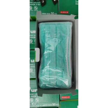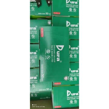 X2กล่องDuraหน้ากากของแท้100%มีเครื่องหมายASTM F2100 Level1/BPF99%PFE99%VFE99%X2กล่องบรรจุกล่องละ50ชิ้นกรอง3ชั้นสีเขียว