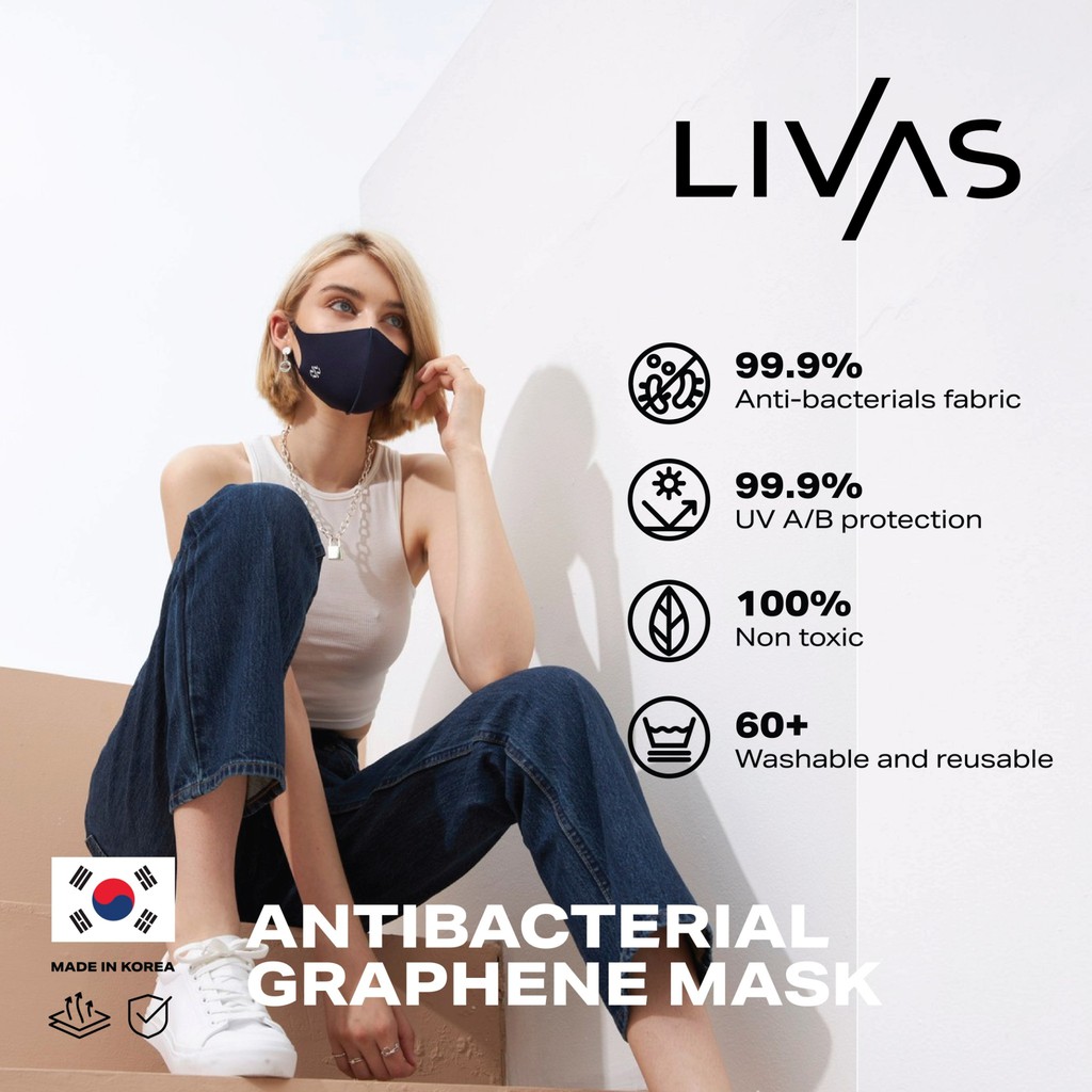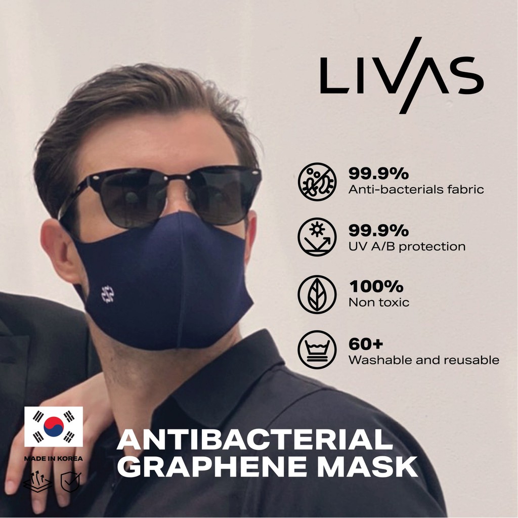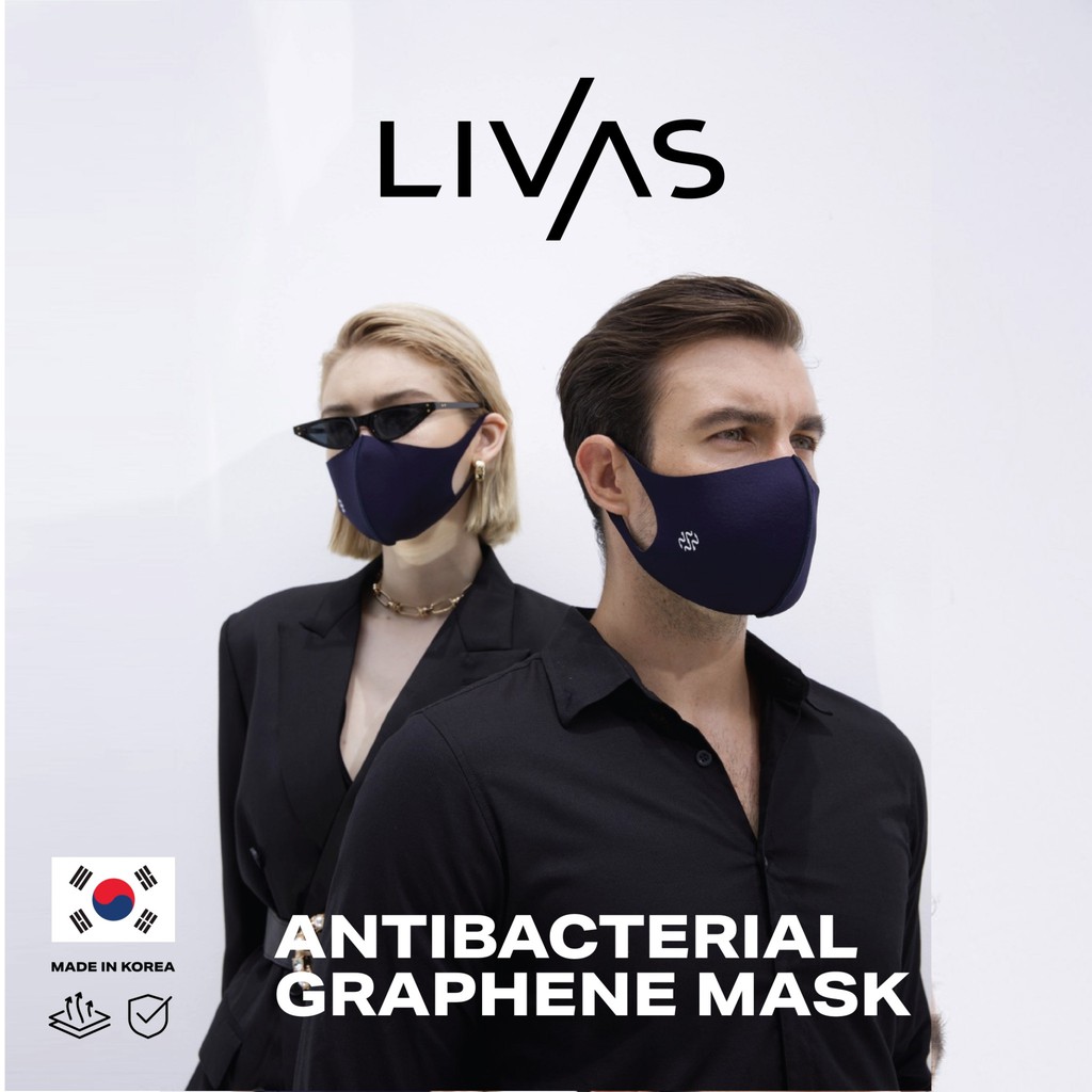 LIVASแมสเกาหลี แมสผ้า หน้ากากผ้า หน้ากากผ้าทรงเกาหลี สีน้ำเงิน Mask Royal Blue สไตล์มินิมอล สไตล์เกาหลี แฟช