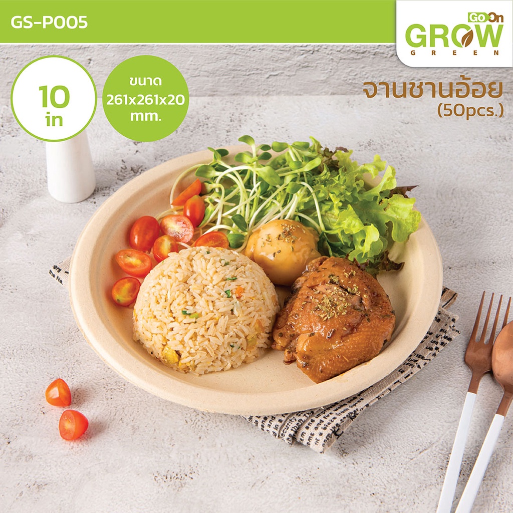 บรรจุภัณฑ์จานชามชานอ้อย ยี่ห้อ GROW (โกว)