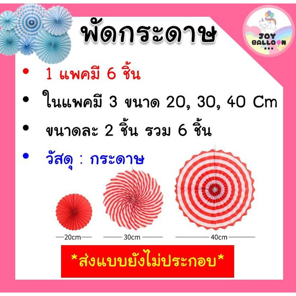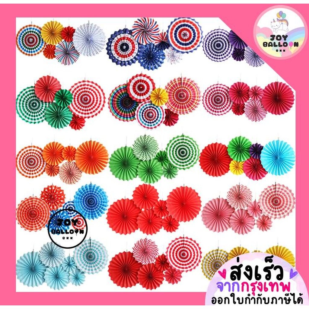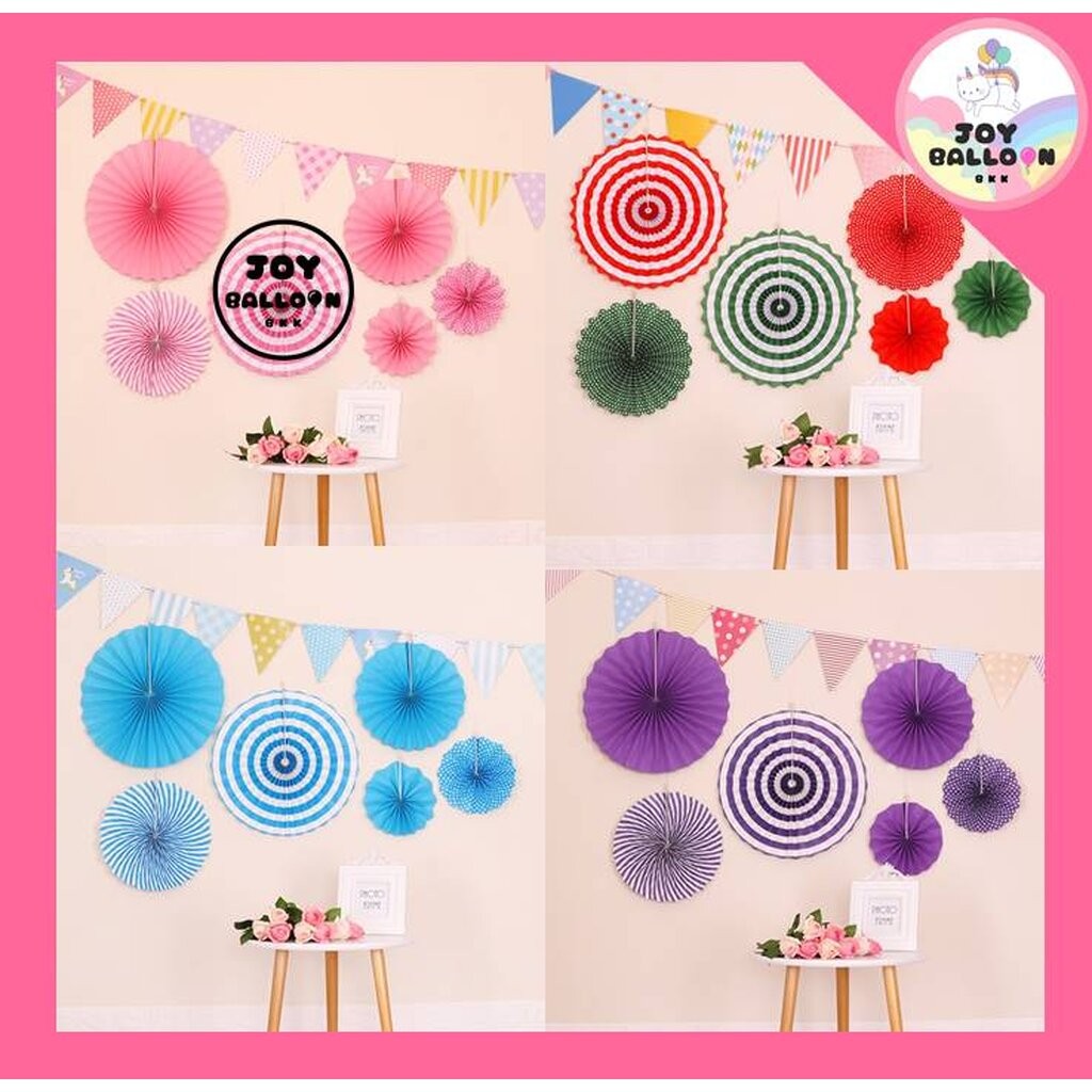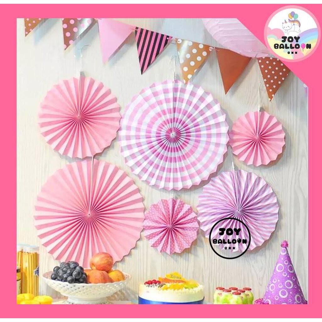 พัดกระดาษดอกไม้ (ชุดละ 6 ชิ้น มี 3 ขนาด) กระดาษตกแต่ง Banner พัดประดับ ตกแต่งฉากหลัง Backdrop งานวันเกิด ปาร์ตี้ ฉากถ...