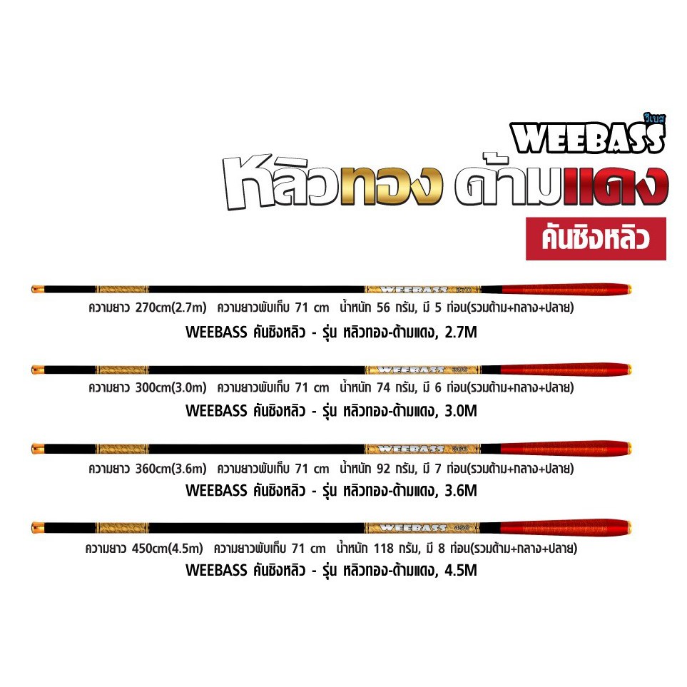 คันชิงหลิว ชิงหลิว รุ่น หลิวทองด้ามแดง by weebass ขนาด2.7/3.0/3.6/4.5 เมตร