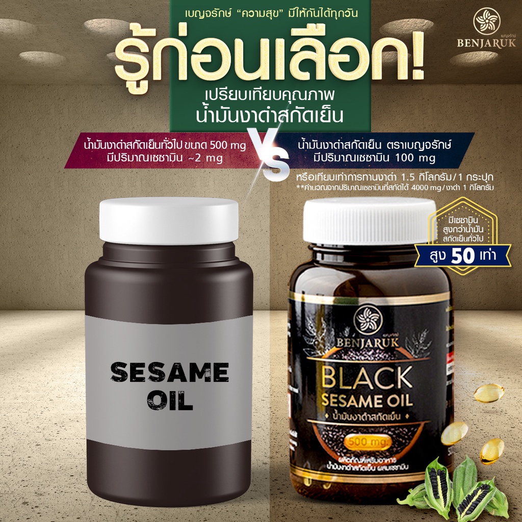[1 กระปุก] น้ำมันงาดำสกัดเย็น ผสมสารสกัดเซซามิน ตราเบญจรักษ์