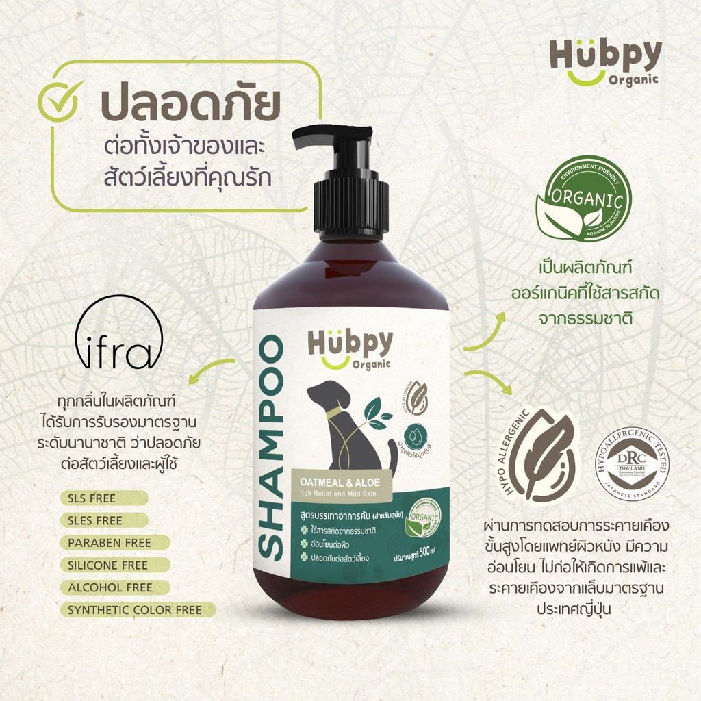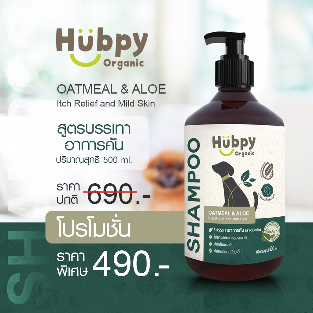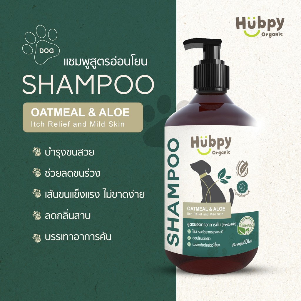 แชมพูสุนัข ออร์แกนิค อ่อนโยน Dog Shampoo 𝐎𝐀𝐓𝐌𝐄𝐀𝐋 & 𝐀𝐋𝐎𝐄 : Itch Relief and Mild Skin สูตรบรรเทาอาการคัน 500ml Hubpy