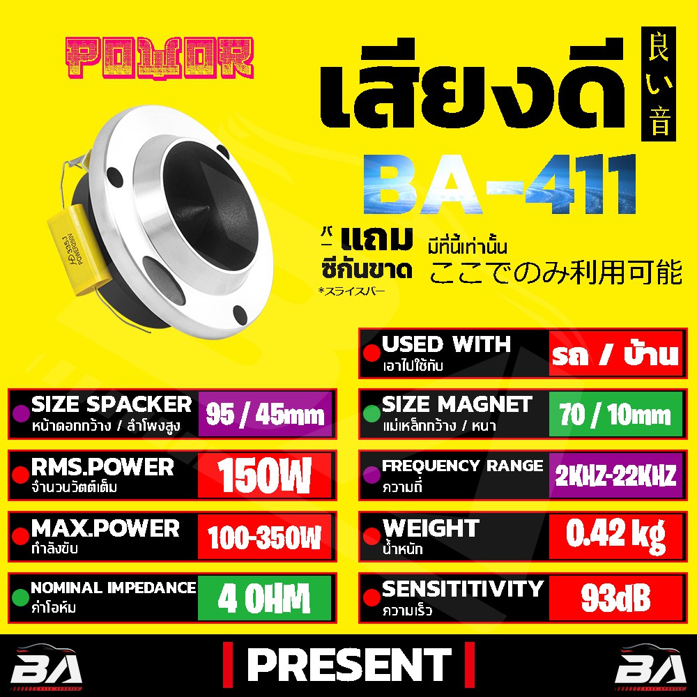 BA SOUND ชุดลำโพงลดราคาพิเศษ 1000วัตต์ ลำโพงเสียงกลาง 6.5นิ้ว แถม ทวิตเตอร์ แหลมจาน 4นิ้ว ชุดลำโพงติดรถยนต์ ชุดลำโพงบ้าน