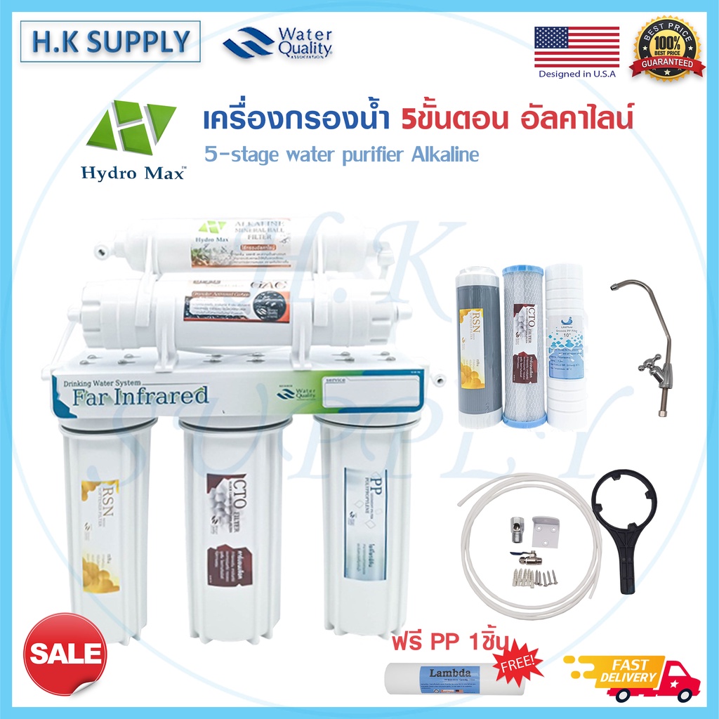 Hydromax เครื่องกรองน้ำดื่ม เครื่องกรองน้ำ อัลคาไลน์ 5 ขั้นตอน พร้อม ไส้กรองในเครื่อง เครื่องกรอง Alkaline HYDRO MAX