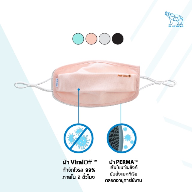 BLUE BEAR แมสผ้า หน้ากากผ้าซักได้ ป้องกันแบคทีเรีย Europe style : 20OO17