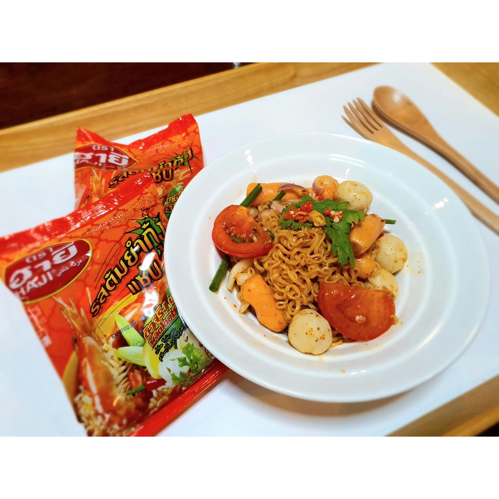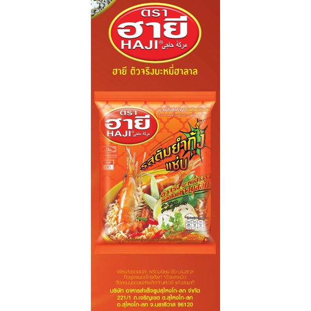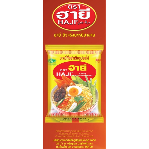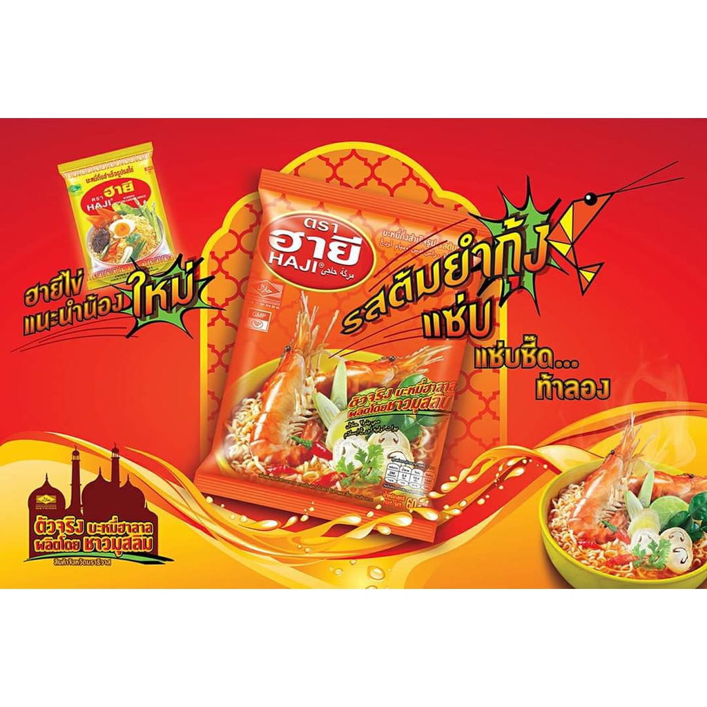 ฮายี [HAJI] บะหมี่กึ่งสำเร็จรูป ฮาลาล ซองละ 60 กรัม (1กล่องมี 30ซอง) มี 2 รสชาติ [รสไข่, รสต้มยำกุ้งแซ่บ]