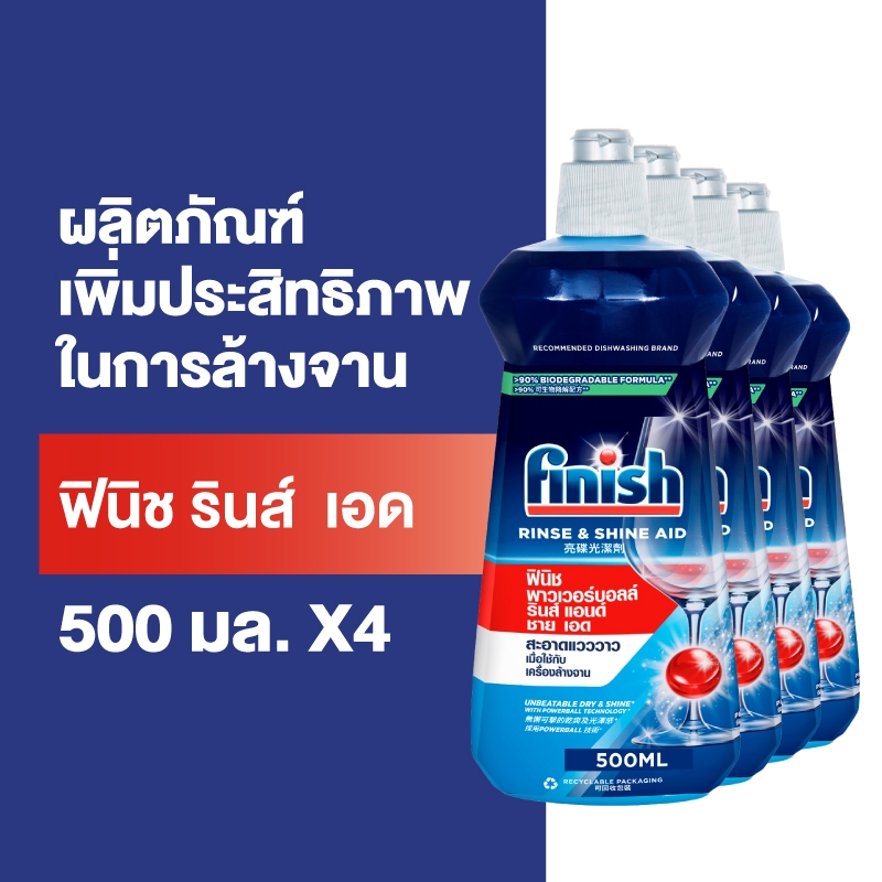 Finish [ซื้อ 3 แถม 1] ฟินิช ผลิตภัณฑ์ล้างจาน แก้วใสแวววาว รินซ์ เอด 500 กรัม