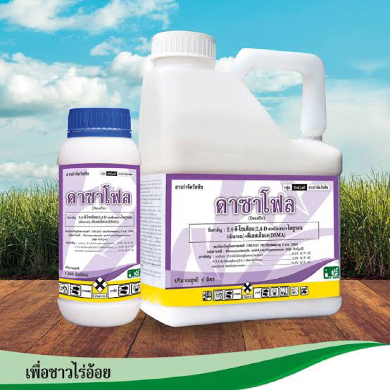 ดาซาโฟล 4ลิตร (24ดีโซเดียม ไดยูรอน ดีเอสเอ็มเอ) สารคุมหญ้า สารกำจัดหญ้าใบแคบใบกว้างในไร่อ้อย