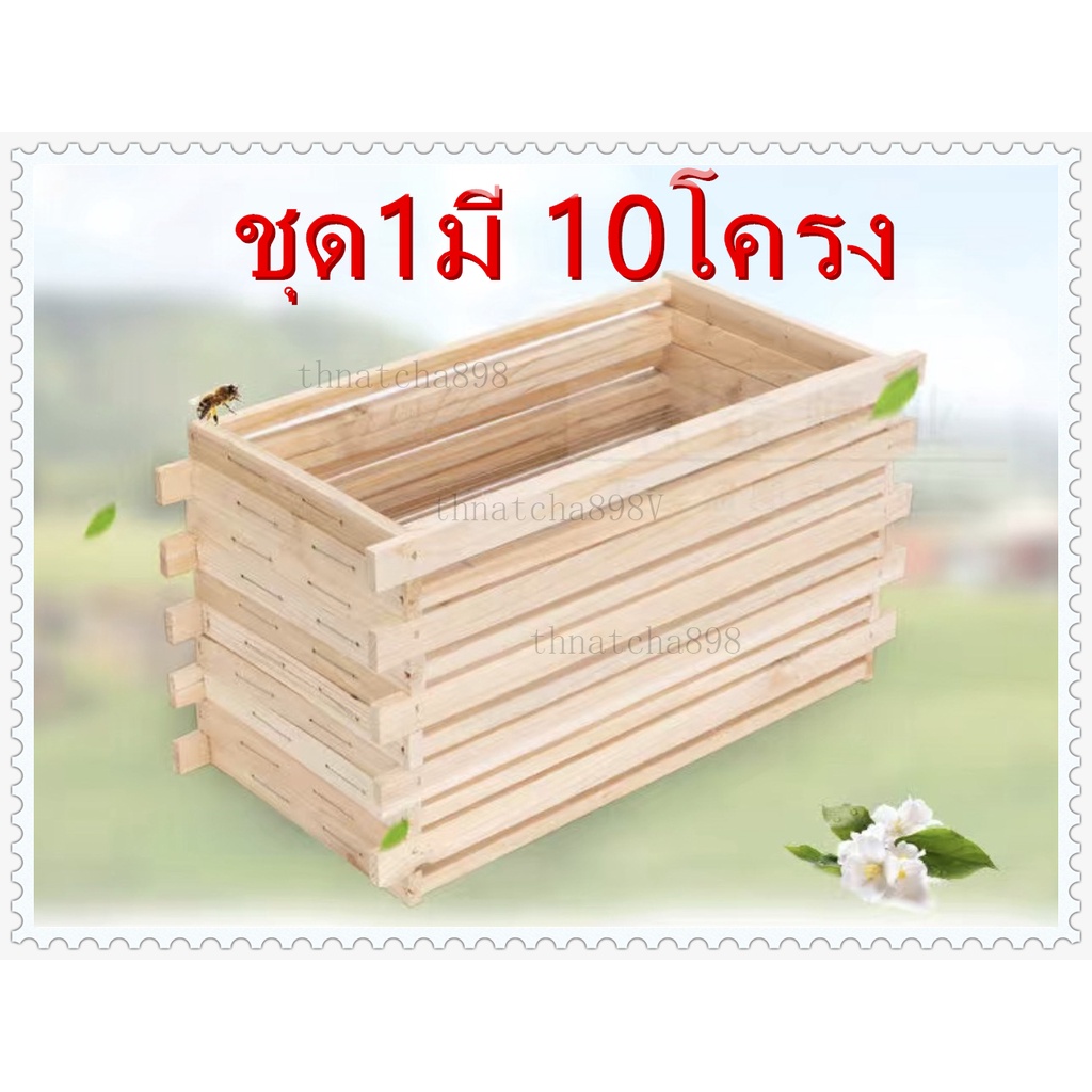 ไม้คอนผึ้ง ผลิตภัณฑ์ผึ้งโครงฐานผึ้ง โครงรังเฟอร์รังผึ้งกล่องผึ้งมาตรฐาน1ชุด มี 10ตัว ประกอบเอง