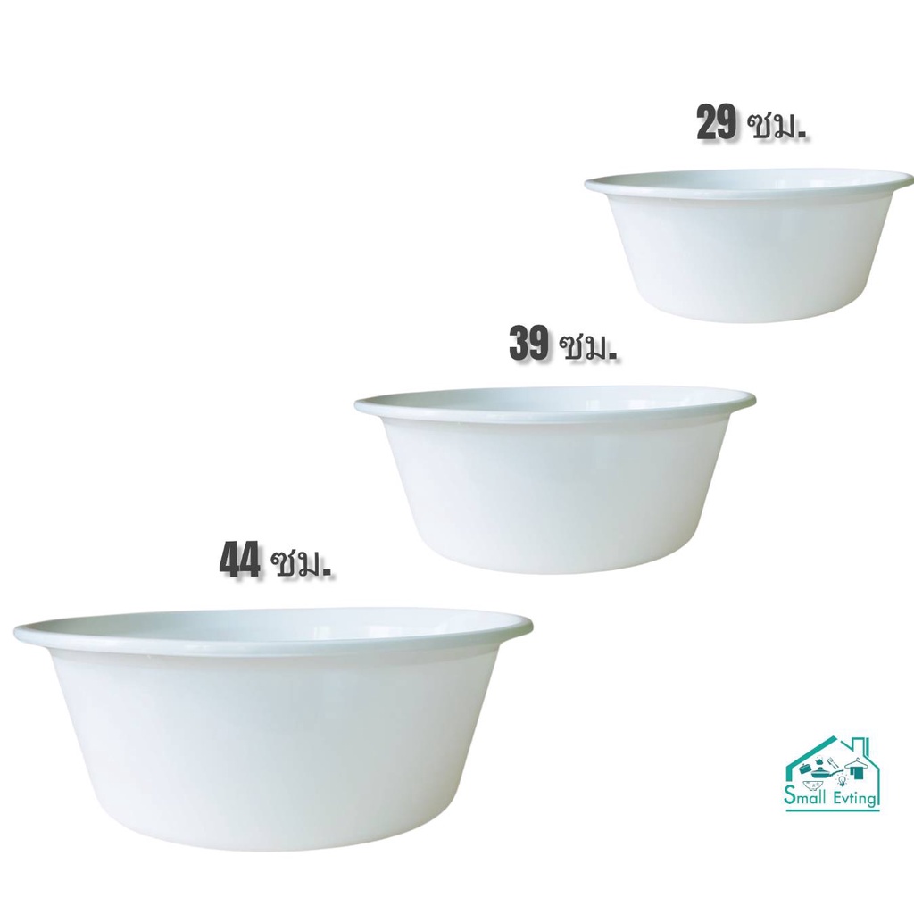 Small Evting กะละมังทรงกลม พลาสติก สีขาว Micron Ware ขนาด 29 - 54 ซม. จำนวน1ใบ 🇹🇭 Made in Thailand