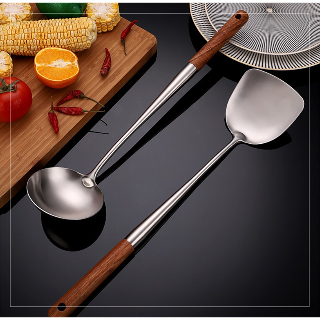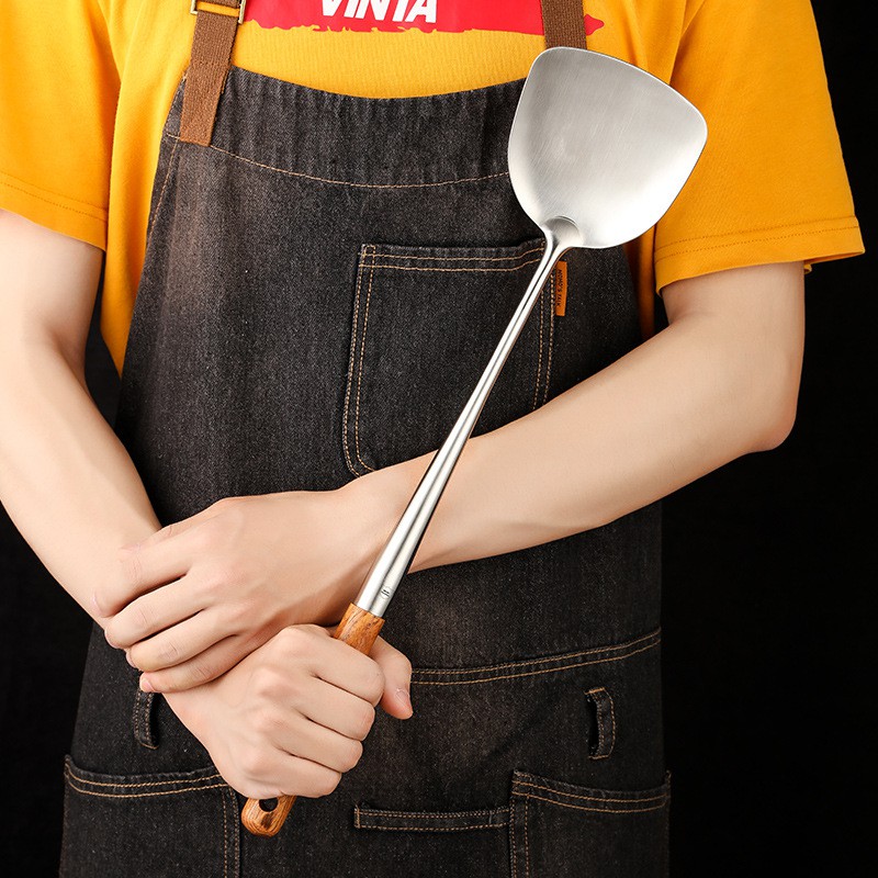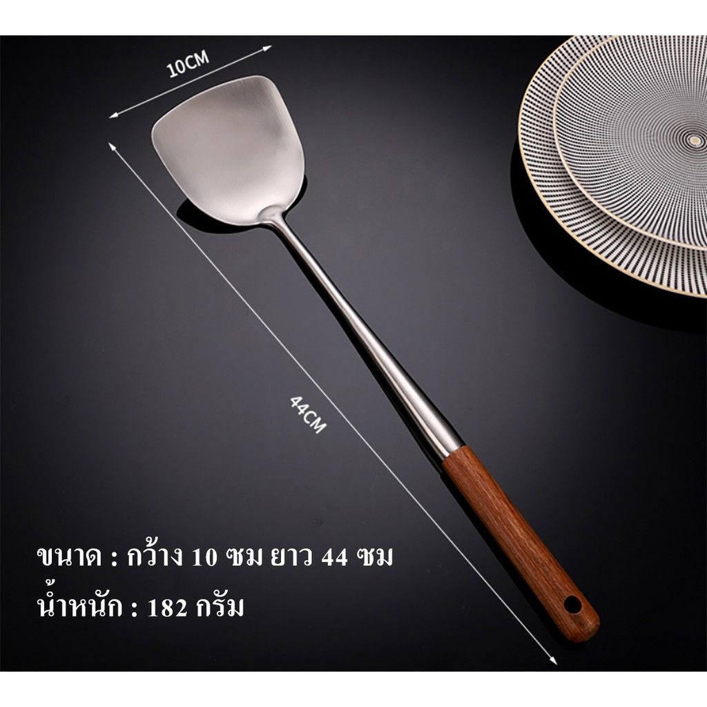 HOMEBERG ตะหลิว ยาวพิเศษ ด้ามจับไม้ ตะหลิวสแตนเลส สแตนเลส304แท้ เครื่องครัว ตะหลิวสแตนเลส304แท้ ด้ามจับสแตนเลส