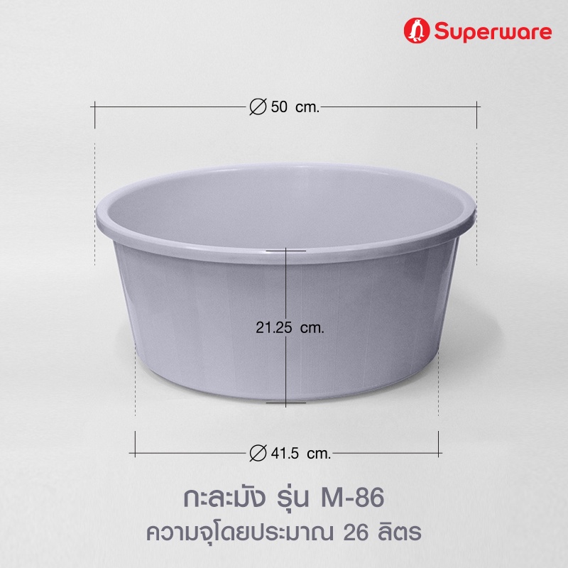 Srithai Superware กะละมังพลาสติก กะละมังซักผ้า ทรงกลม 1 ใบ ขนาด 50 ซม. ปริมาตร 26 ลิตร รุ่น M-86