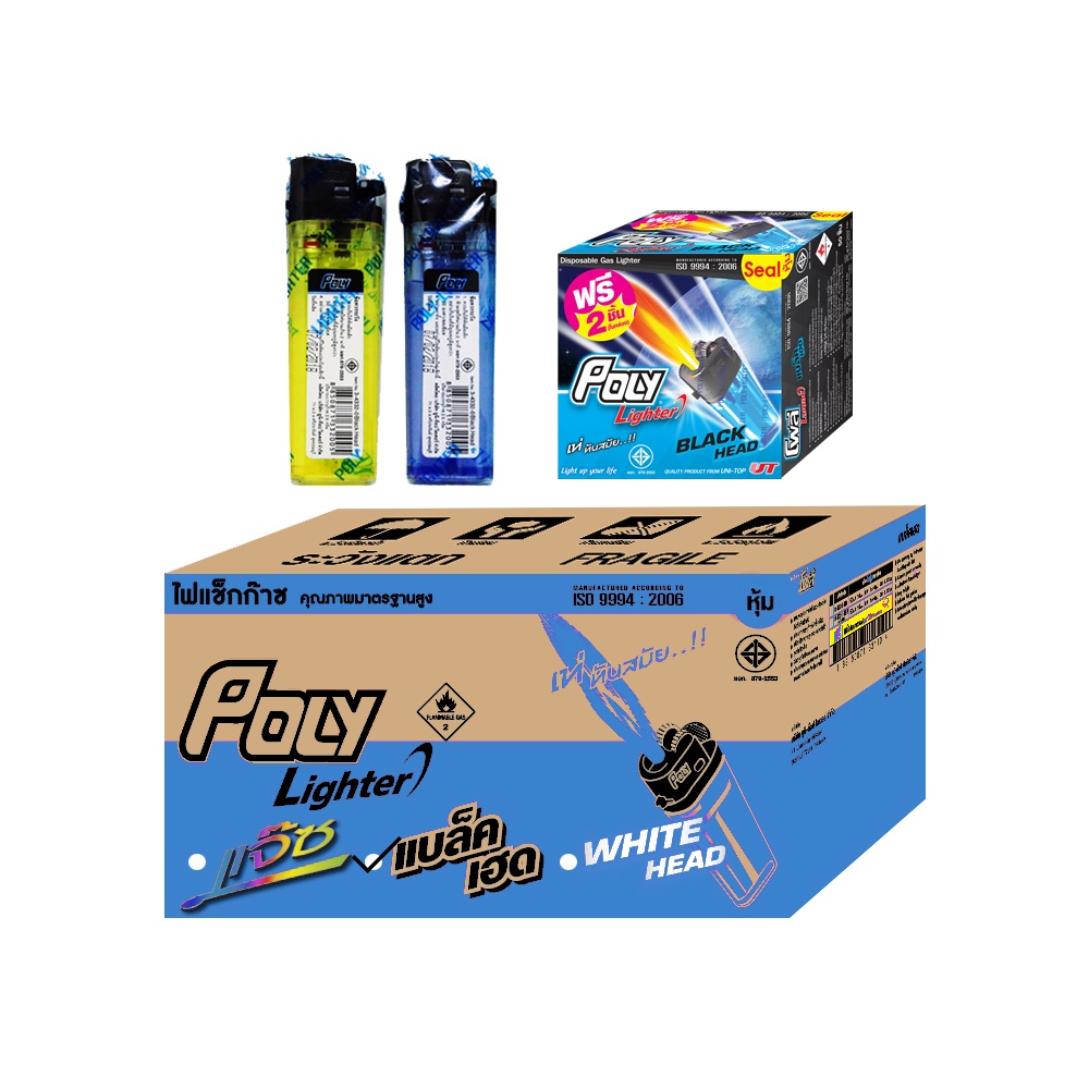 Poly ไฟแช็กก๊าซ รุ่น Black Head ชนิดหุ้ม (50 แถม 2 ชิ้น) ราคาโรงงาน
