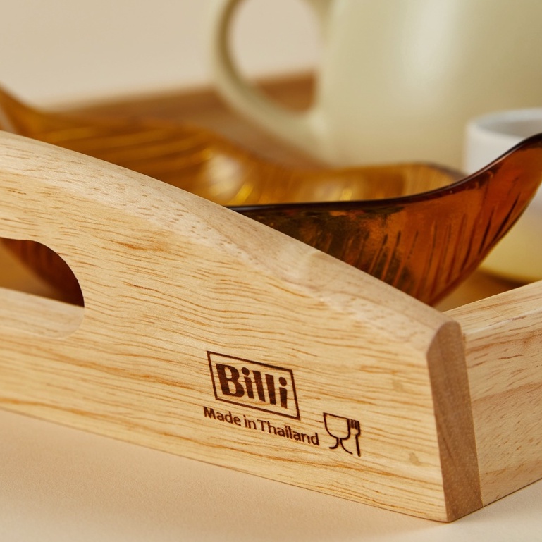 BILLI DESIGN [TEA TRAY] ถาดไม้ยางพารารุ่นมือจับมน