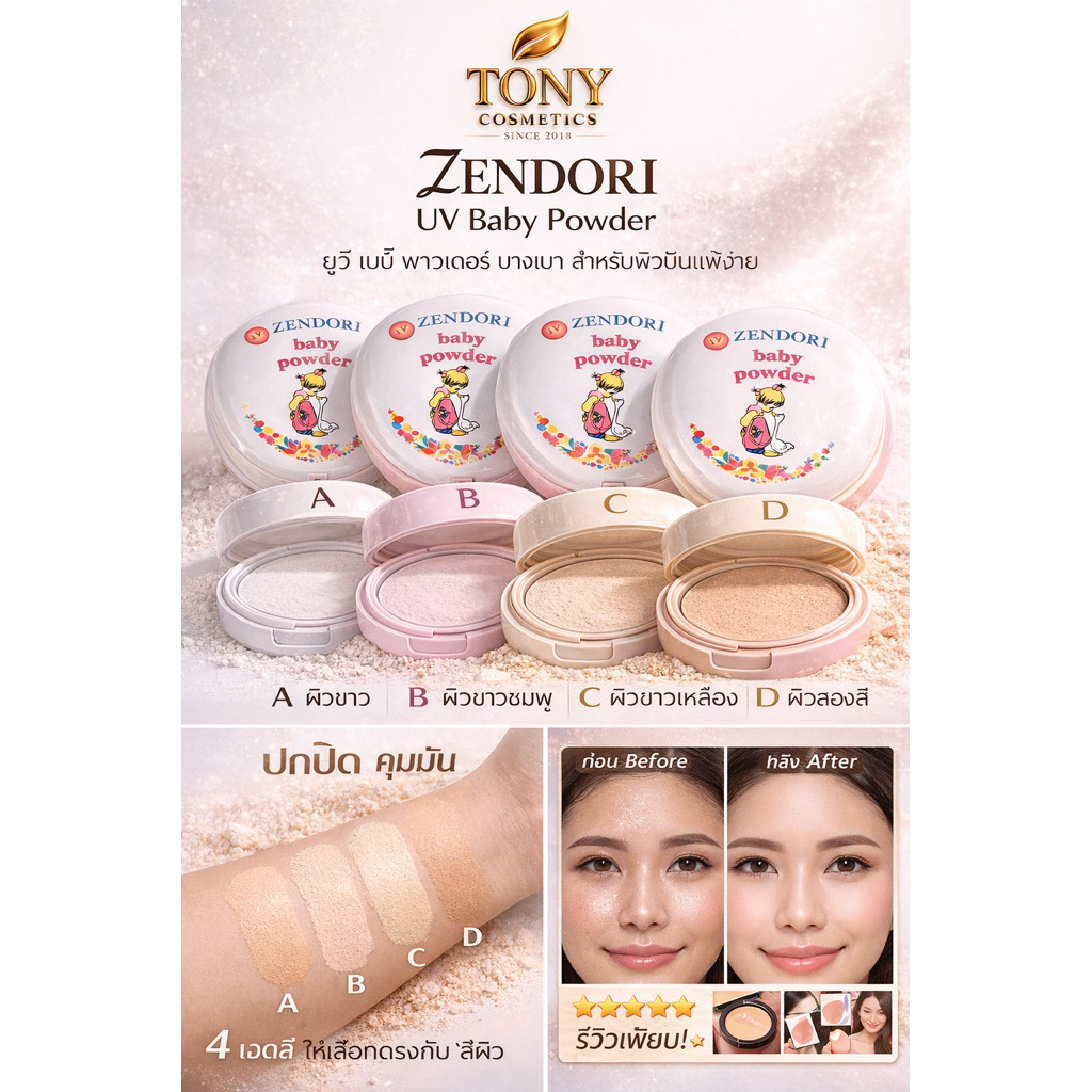 ส่งด่วน/ส่งทันที ZENDORI Baby Powder แป้งฝุ่นอัดแข็งขนาด 24g