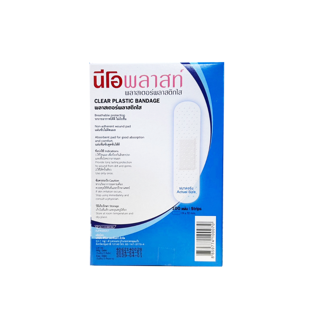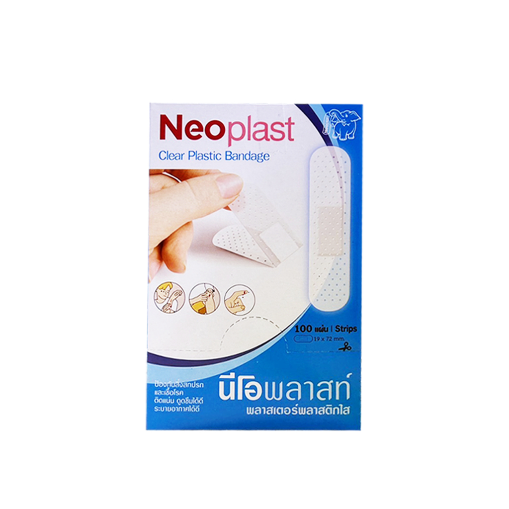 NEOPLAST นีโอพลาสท์ พลาสเตอร์พลาสติกใส 100 แผ่น/กล่อง เเพ็คเกจใหม่