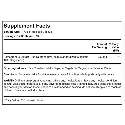 สารสกัดจากทับทิม PipingRock® Pomegranate Standardized With Ellagic Acid 500 mg 200 Quick Release Capsules