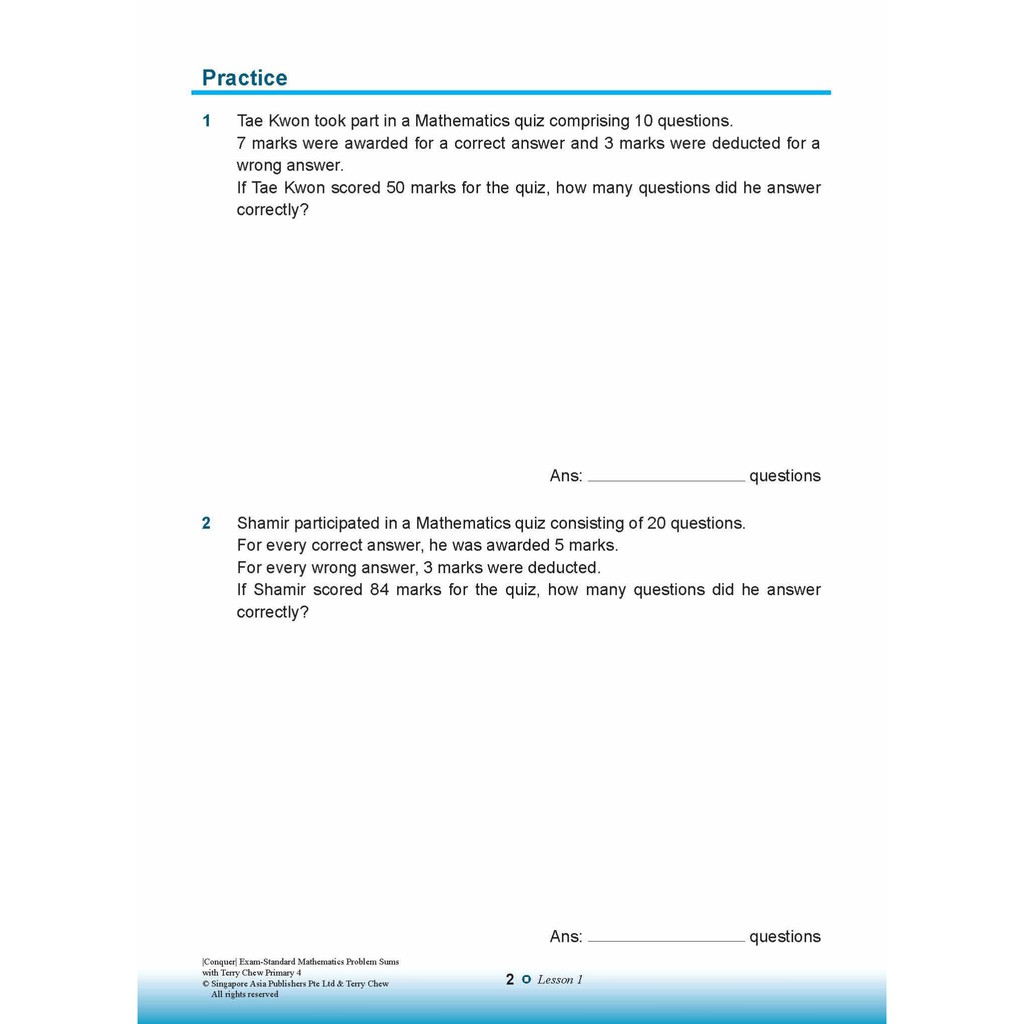 GSAP_แบบฝึกหัดคณิตศาสตร์ประถมศึกษาปีที่ 4 Conquer EXAM-STANDARD Mathematics PROBLEM SUMS Primary 4