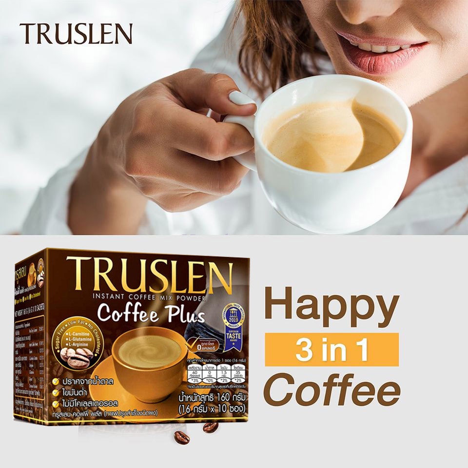 [กล่องใหญ่] Truslen Coffee Plus ทรูสเลน คอฟฟี่ พลัส [40 ซอง] กาแฟ ไม่มีน้ำตาล