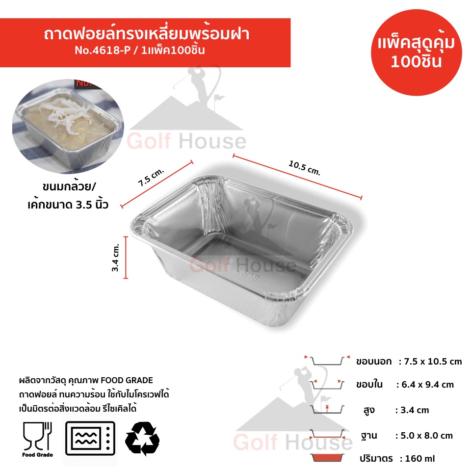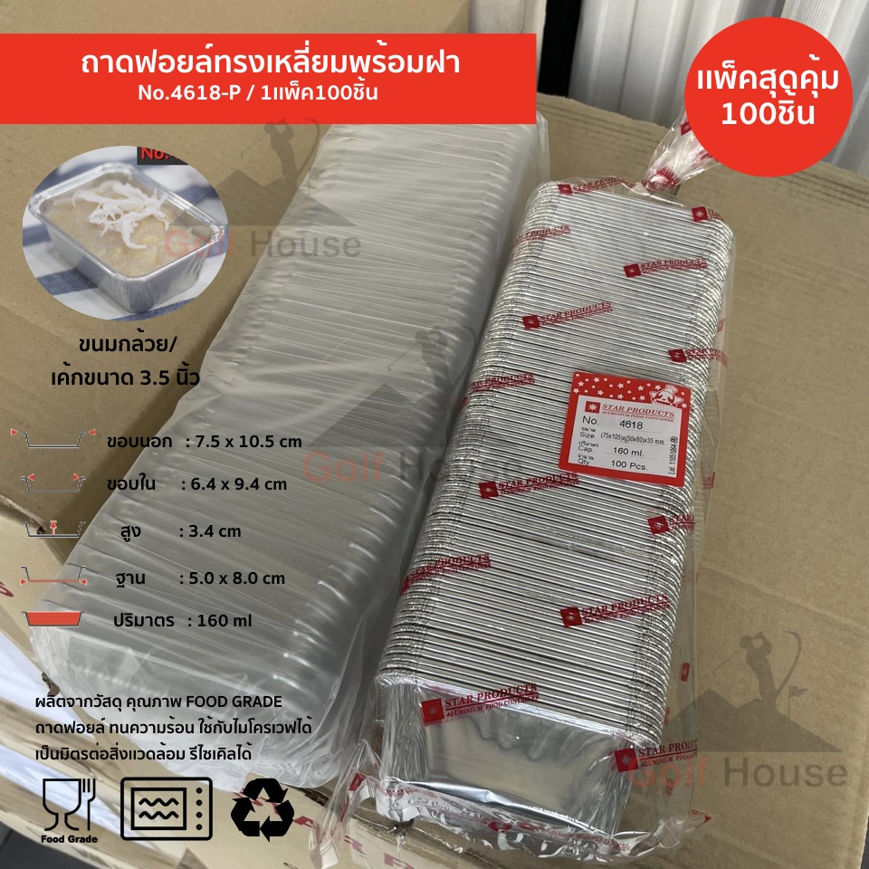 ถ้วยฟอยล์เหลี่ยม No.4618-P (ซื้อเเพ็คสุดคุ้ม ประหยัดกว่า) 1เเพ็ค100ชิ้นพร้อมฝา ถ้วยฟอยล์ 160 ml. ถ้วยฟอยล์สตาร์โปรดักส์