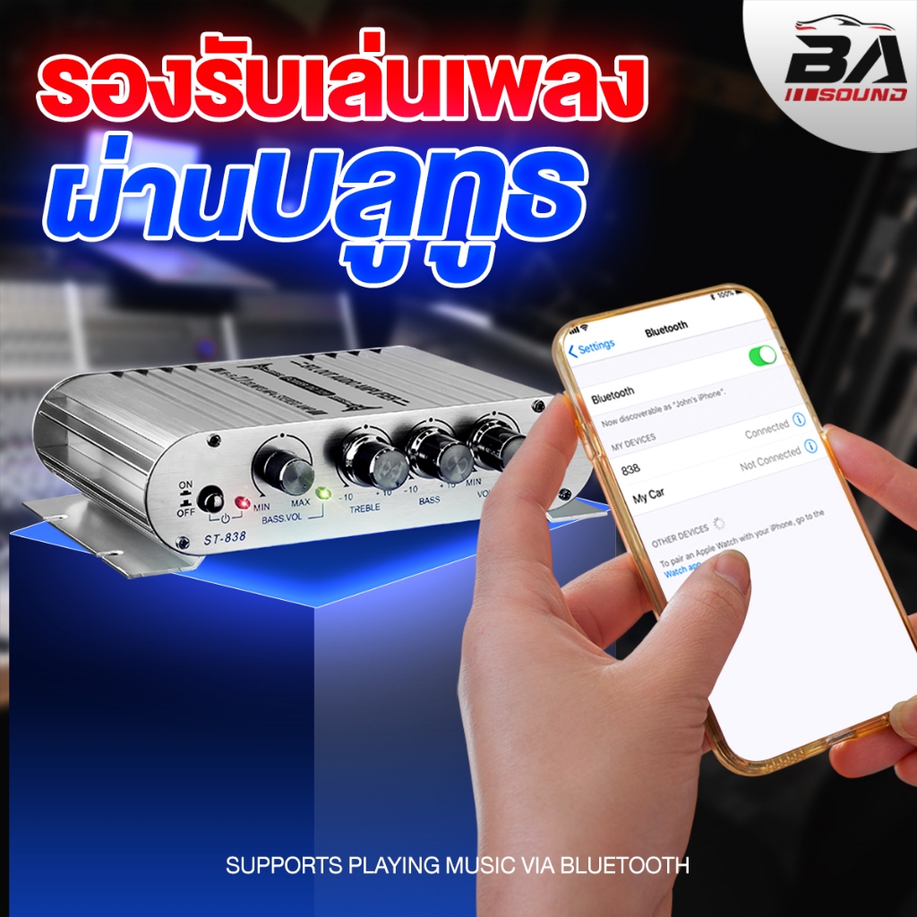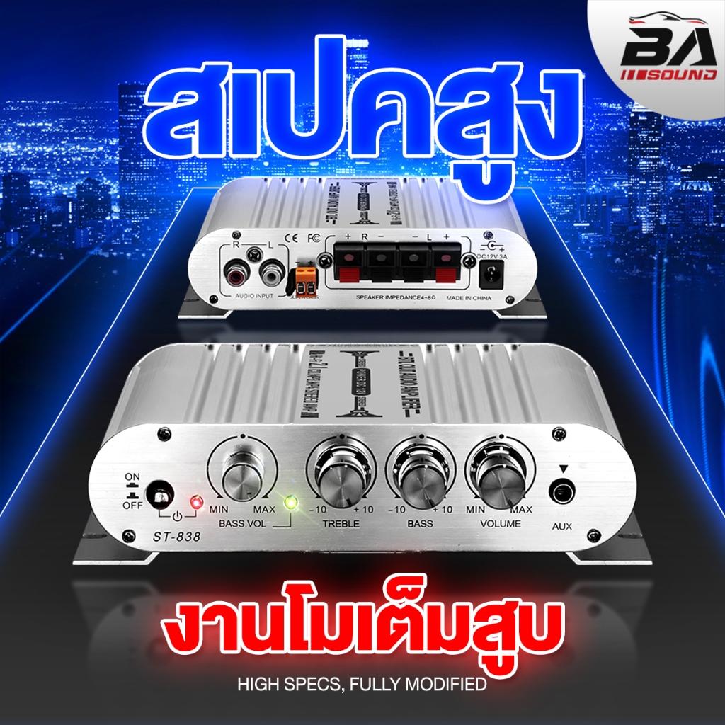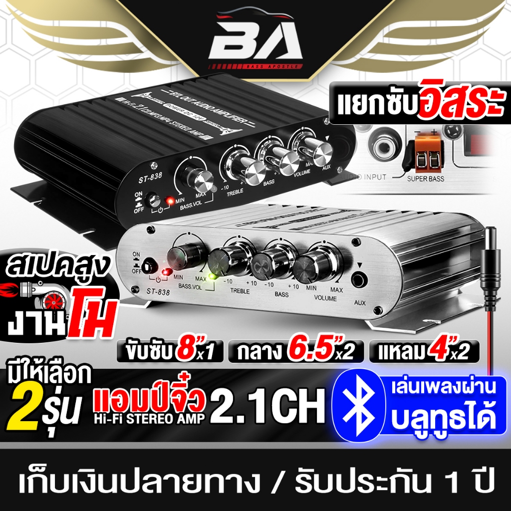 BA SOUND เพาเวอร์แอมป์ แอมป์จิ๋ว 12V-18V 2.1CH แยกซับอิสระ มีให้เลือก 2 รุ่น BA-838 มีบลูทูธ / ST-838 เพาเวอร์จิ๋ว