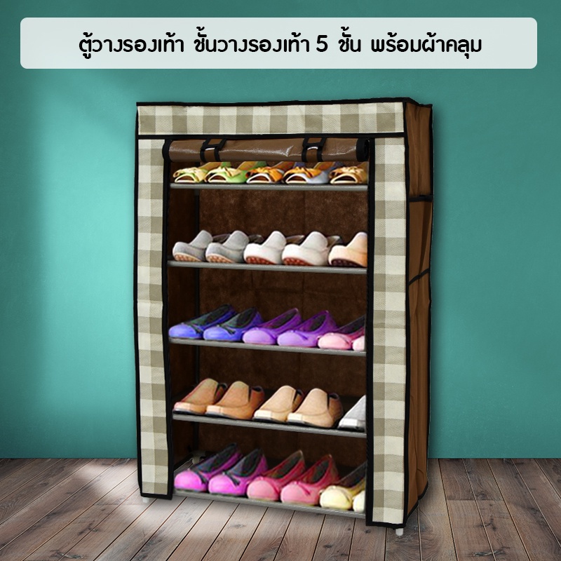 GALAXY ตู้วางรองเท้า ชั้นวางรองเท้า 5 ชั้น พร้อมผ้าคลุม รุ่น AYY-9999-5 (สีน้ำตาล)