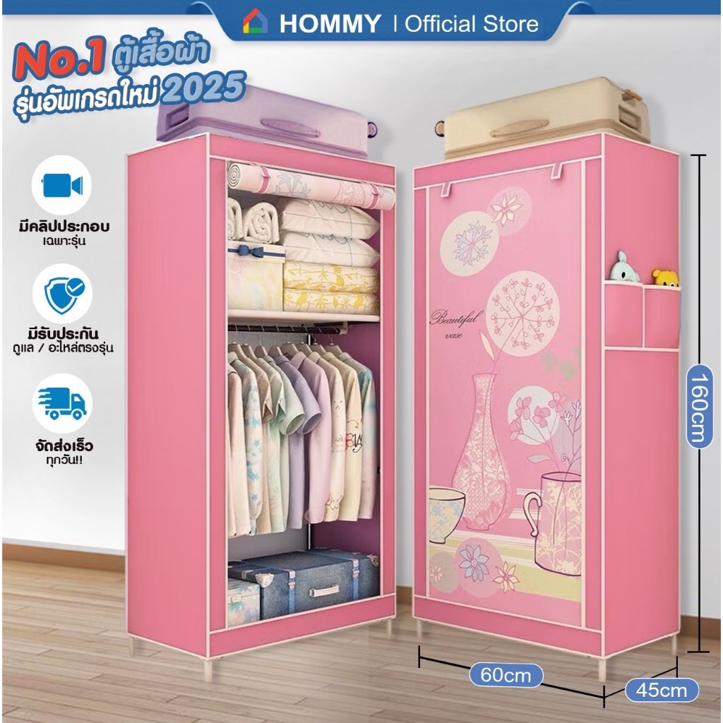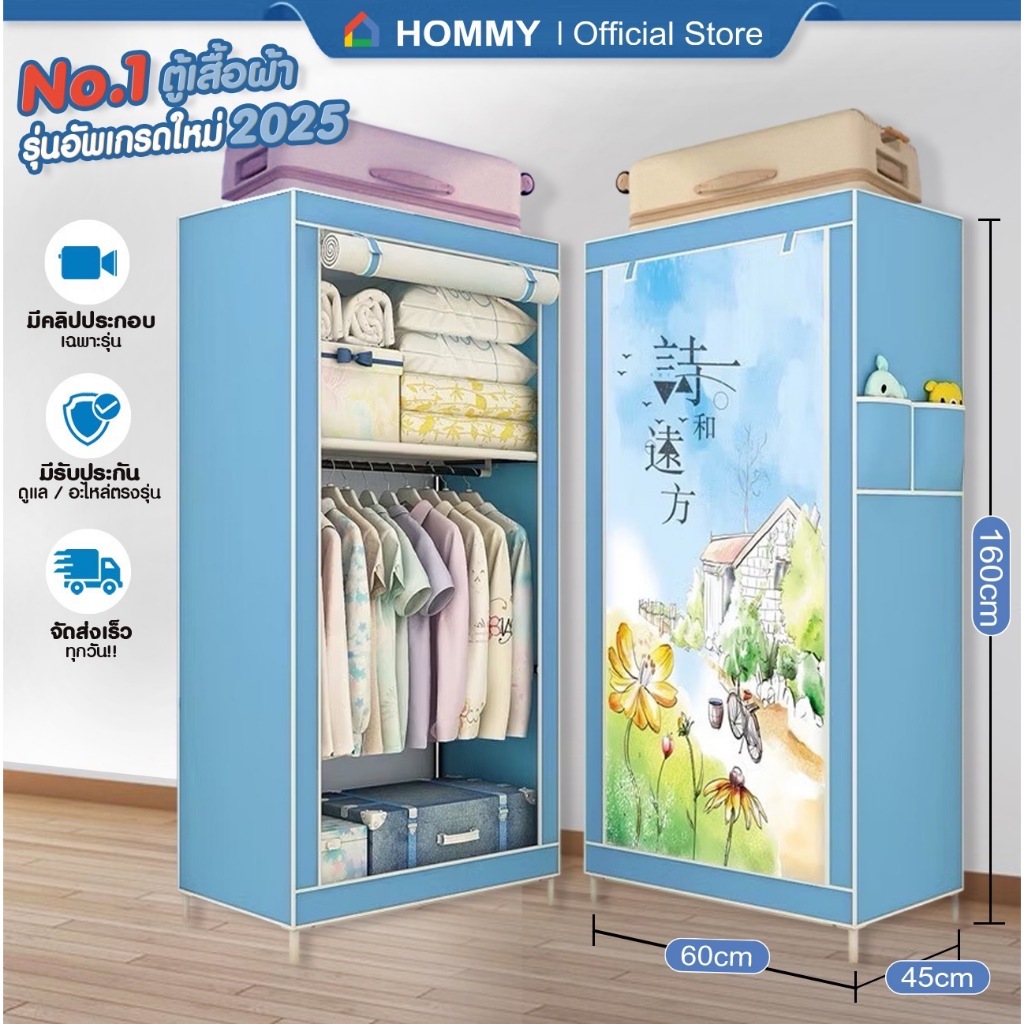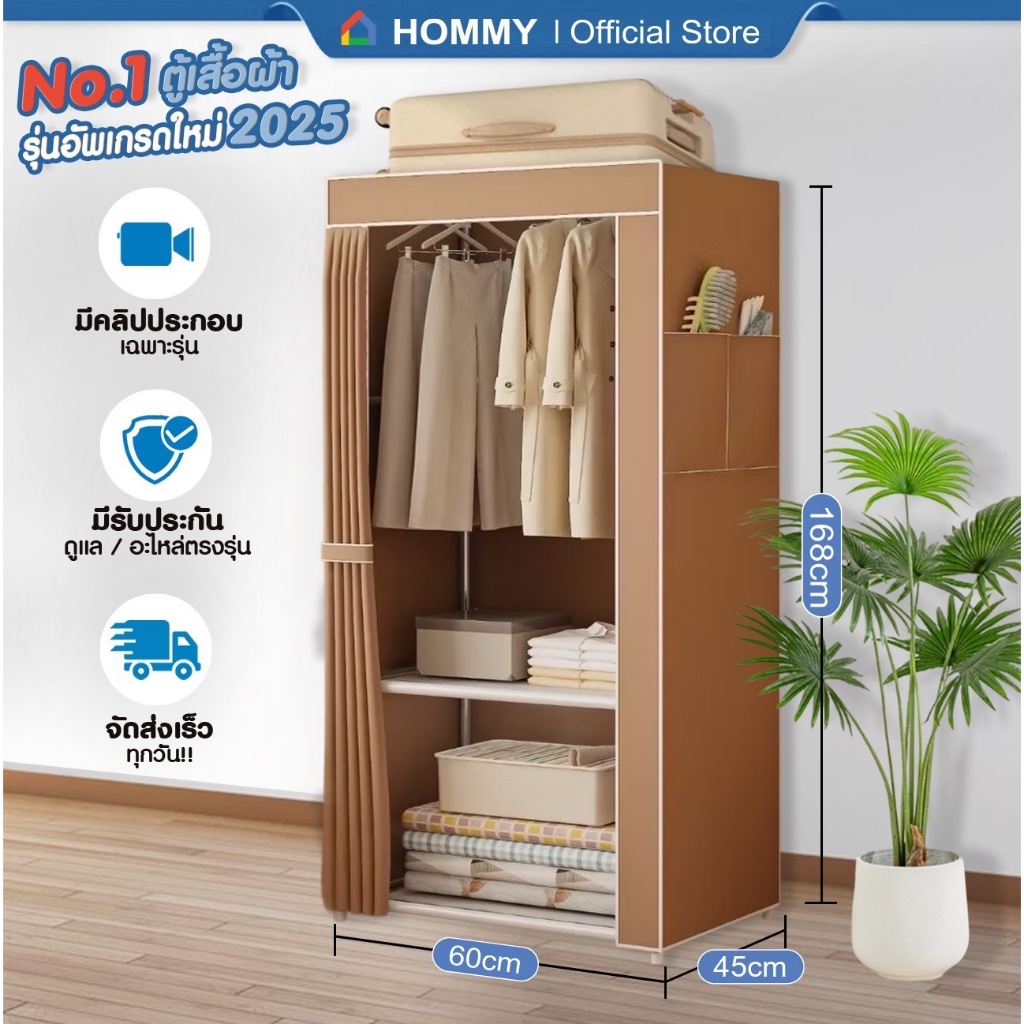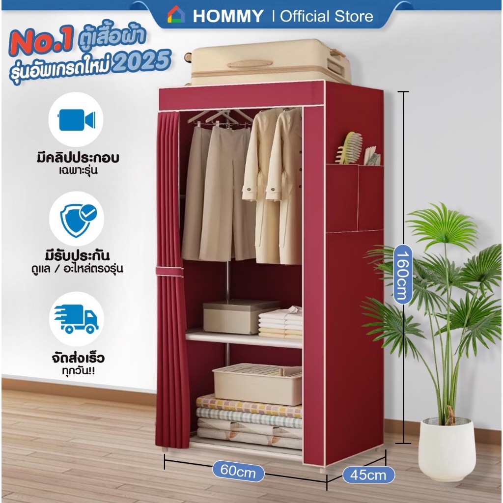 【 ส่งไว-ภายในวัน. 】HOMMY ตู้เสื้อผ้า ตู้ผ้า ผ้าคลุมหนากว่าเดิม เหล็ก 13 mm. @1 #WD1..