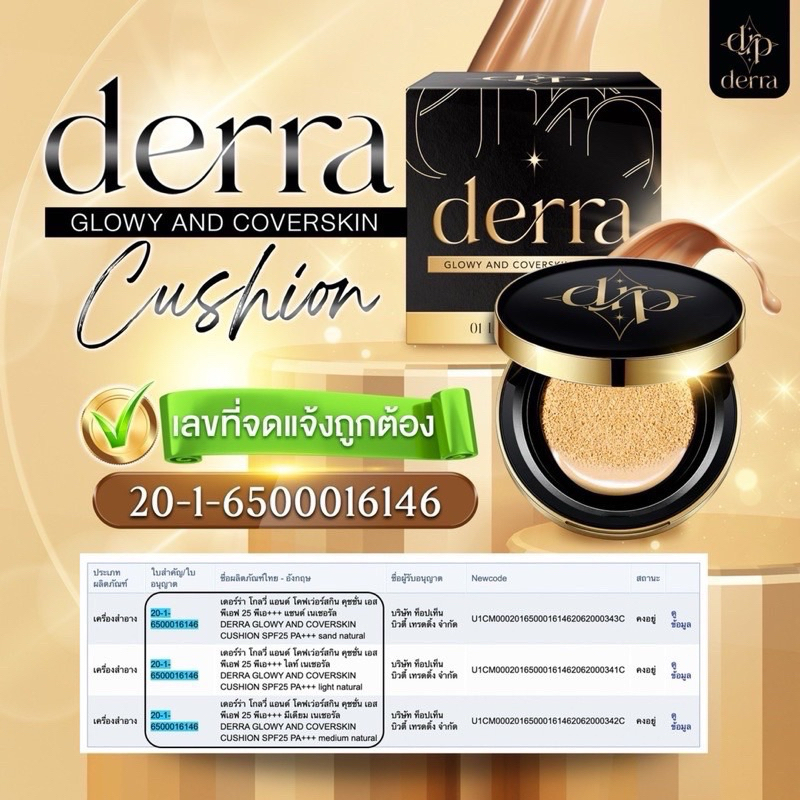 สั่งในไลฟ์ 149.-🌼 [ของแท้ + ส่งฟรี] คุชชั่นเดอร์ร่า Derra Cushion คุชชั่นสูตรเนื้อแมตซ์ คุมมัน ปกปิด
