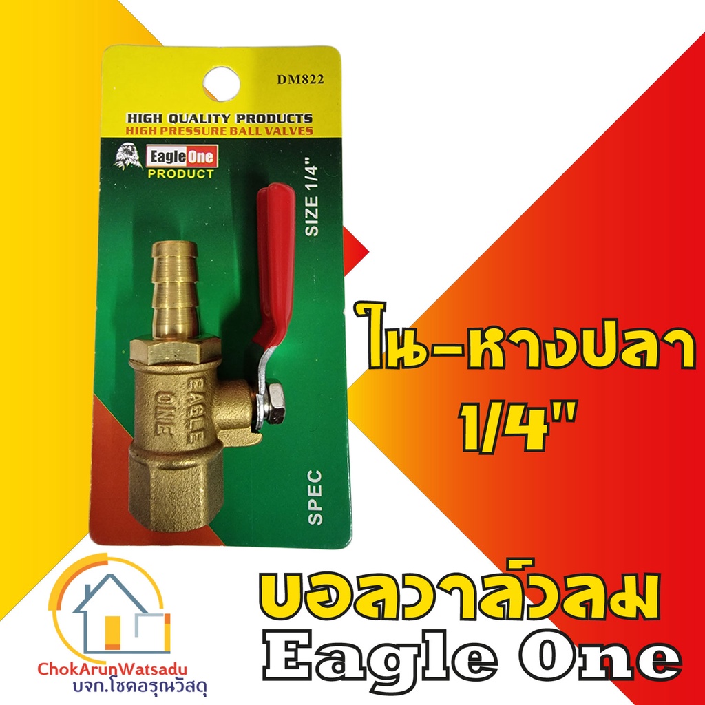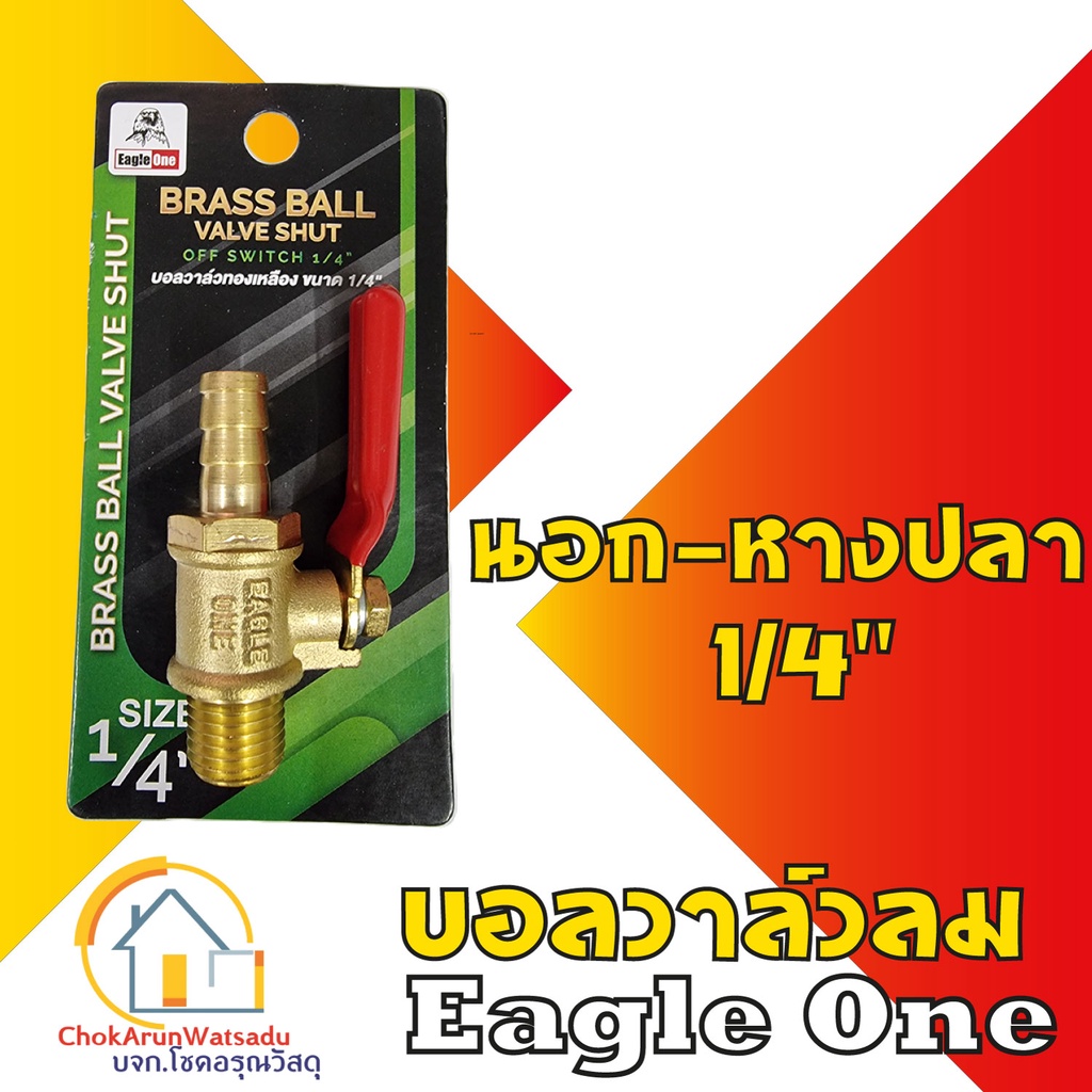 Eagleone ก๊อกลมทองเหลือง วาล์วลมทองเหลือง 2หุน(1/4”) บอลวาล์ว ก๊อกลม ก๊อก วาล์ว ทองเหลือง วาล์วลม