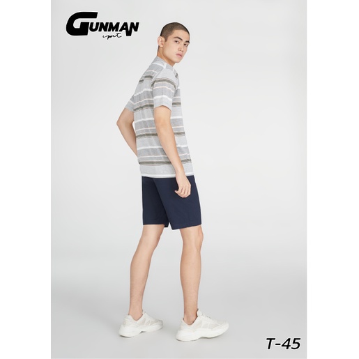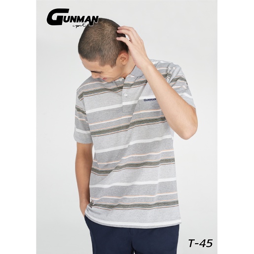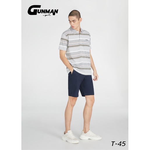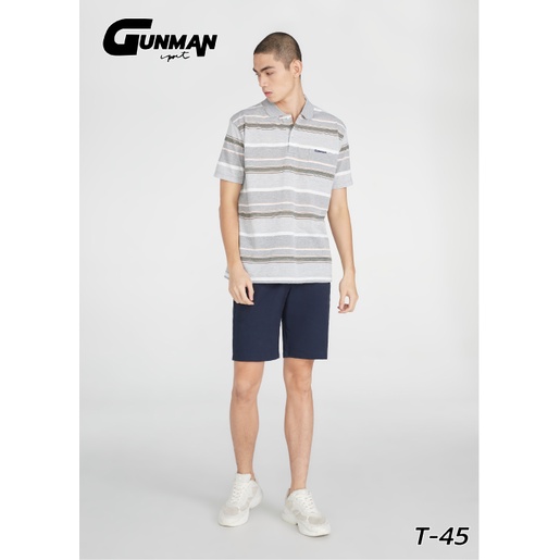 Gunman เสื้อโปโลแขนสั้นผู้ชายมีกระเป๋า คอปก ลายริ้ว คลาสสิค สไตล์ยุโรป สำหรับผู้ใหญ่ รุ่น T-045