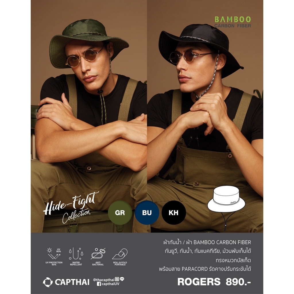 หมวกปีกรอบกัน UV ผ้าสะท้อนน้ำ รุ่น Rogers รอบศรีษะ 60 ซม. (ผ้าร่มกันน้ำ)