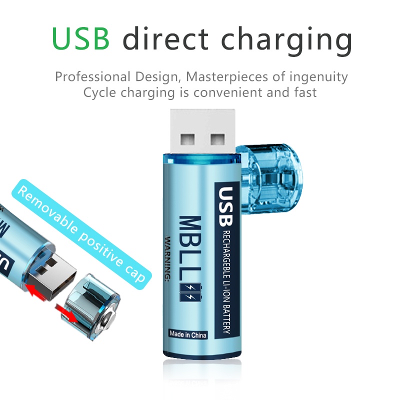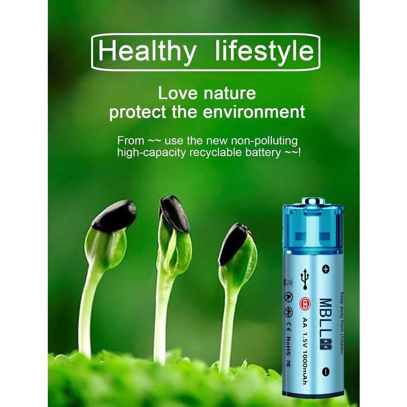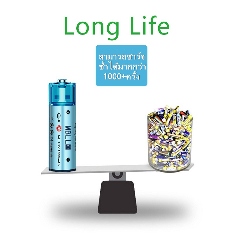 MBLL AA 1.5V USB Rechargeable Battery (ถ่านชาร์จ USB AA 1.5V ความจุ1000แอมป์ ) ซื้อ2ก้อนมีแถมกล่องใส่ถ่านนะคะ
