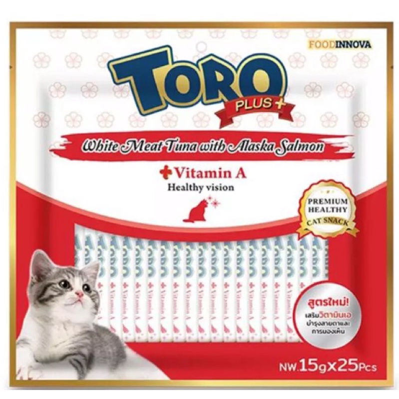 ขนมแมวเลียโทโร่พลัส toro toro plus เกรดพรีเมี่ยมแบบแพคมี25ซอง ขนาด15กรัม รับประกันสินค้าใหม่