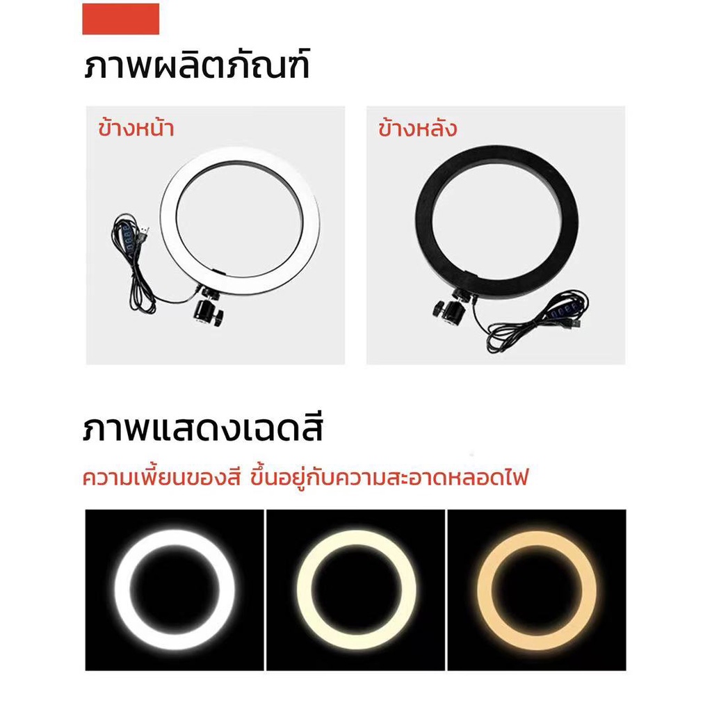 🏆jj333shop🏆ไฟไลฟ์สด 26-30CM ขาตั้ง ไฟ2เมตร+ที่จับมือถือ ไฟสตูดิโอ มีหลายขนาดให้เลือก ปรับได้3สี