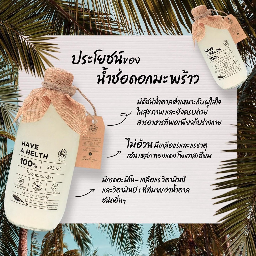 น้ำช่อดอกมะพร้าว100% ตรา ฮายัง Hayoung have a health ไม่ใส่น้ำตาล ไม่ผสมน้ำ ไม่ใส่สารกันเสีย ขนาด 320ml./ขวด