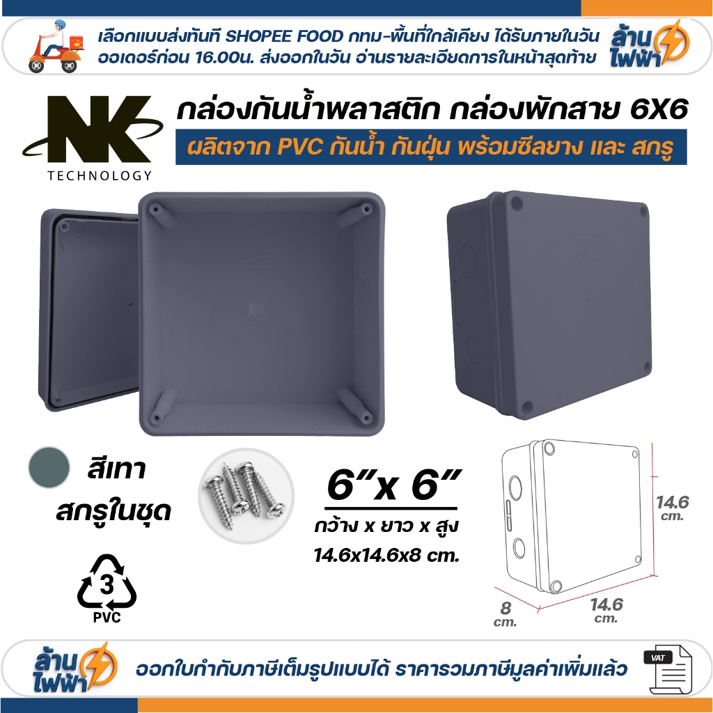 (20ชิ้น/40ชิ้น) NK กล่องพักสาย Box กันน้ำ 6x6 นิ้ว มีซีลยาง สีขาว เหลือง เทา ดำ กล่องกันน้ำ บ๊อกกันน้ำ บ๊อกพักสาย