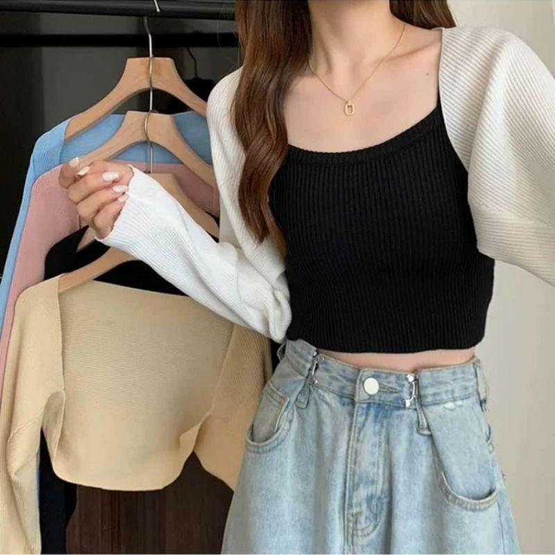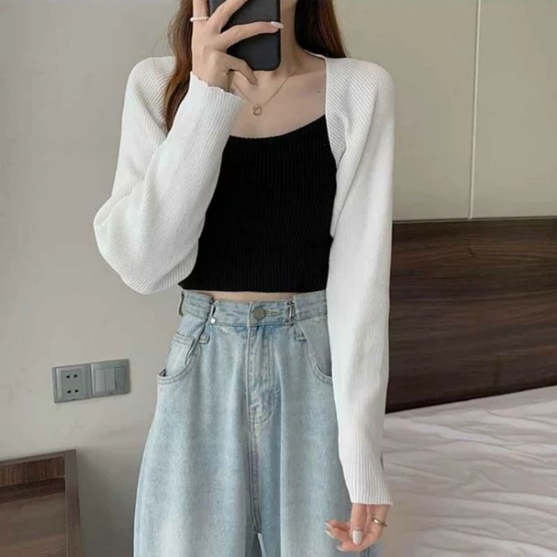 JJ Shop💜พร้อมส่ง เสื้อคลุมไหมพรมครึ่งตัว ใส่สบายมาก ผ้าร่องน่ารัก "23150"