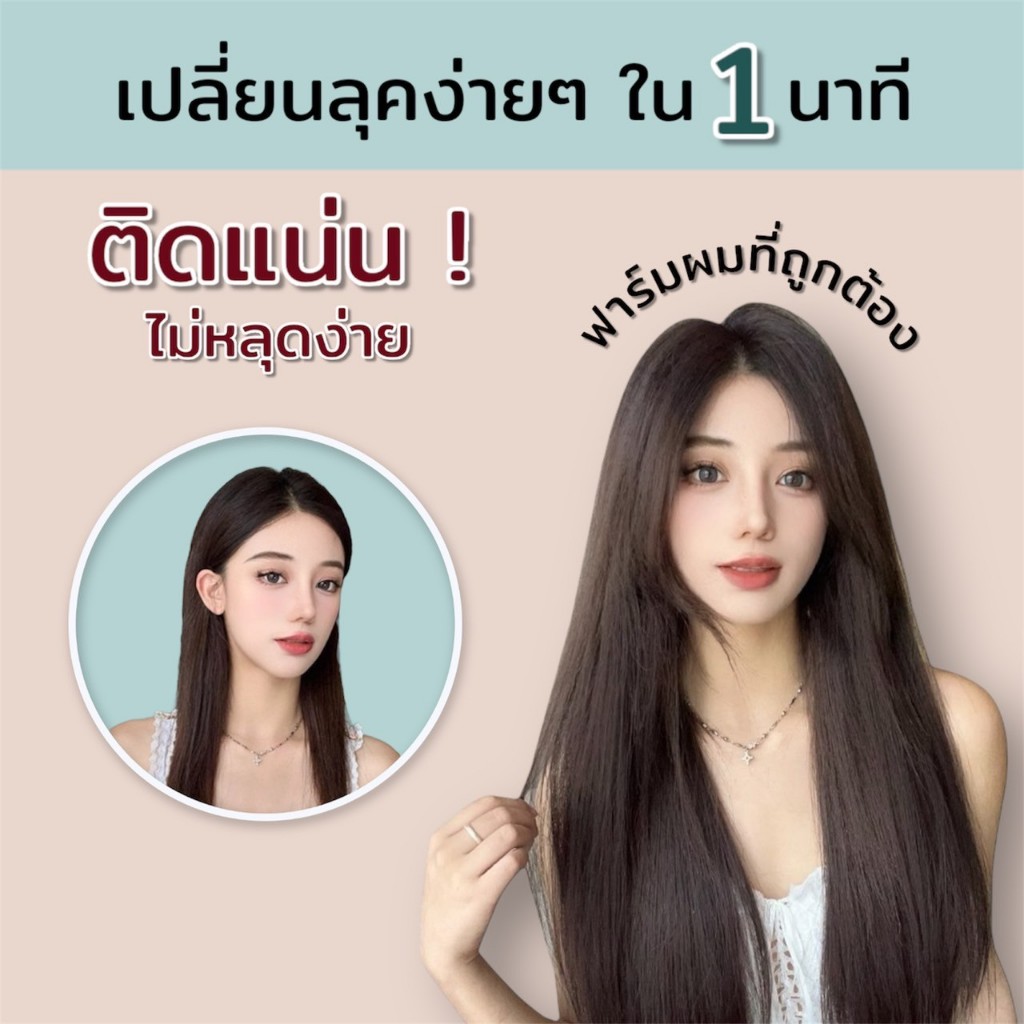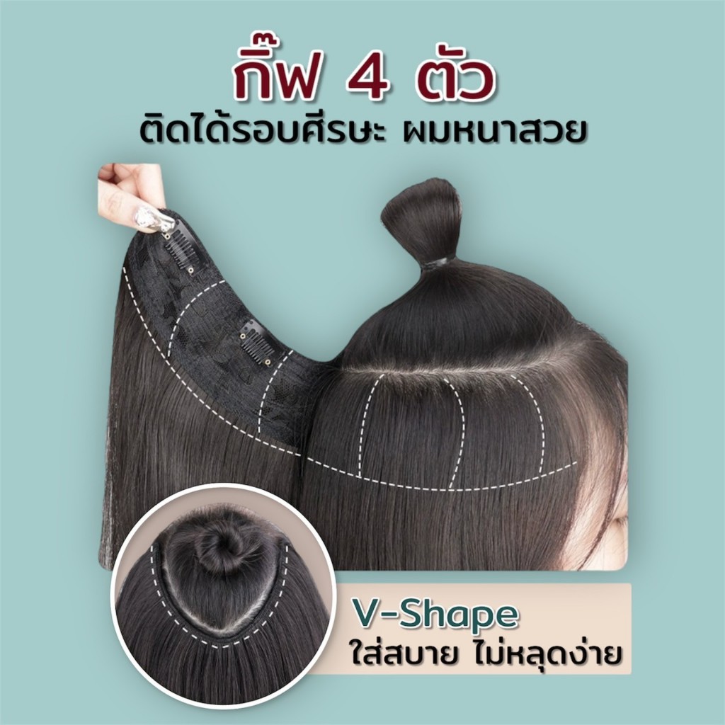 แฮร์พีชผมตรง รุ่นทรงV เข้ารูปกับทรงศรีษะ เกรดไฮเอนด์ หนา 180 กรัม หนีบ/ดัดได้ - ยาว 50,60 CM
