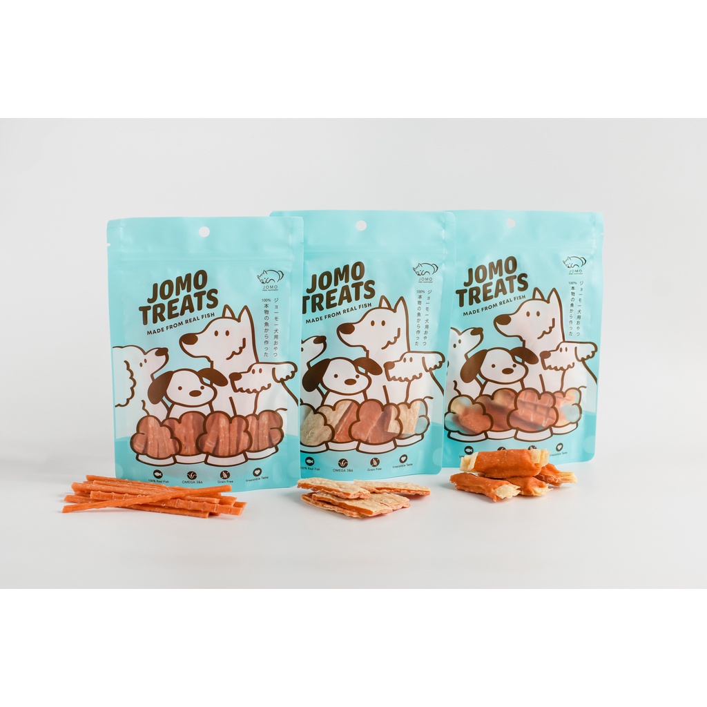 ขนมสุนัข JOMO TREATS แพ็คสุดคุ้ม 3 ถุง 3 แบบ ทำจากเนื้อปลา สติ๊กแซลมอน มินิปลาแซลมอน มินิแซนวิช
